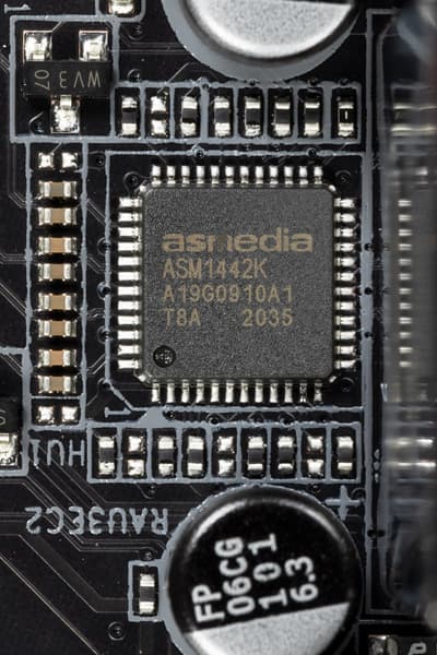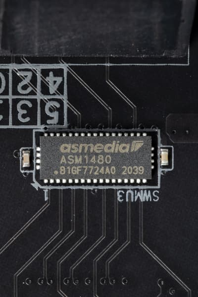 Для обеспечения переключений между М.2 и SATA портами имеется мультиплексор ASM1480 от ASMedia.