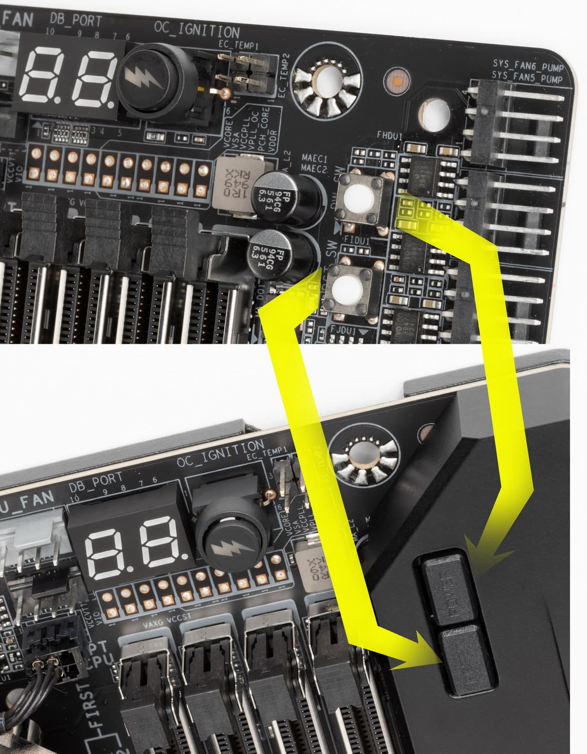 Однако если вы думаете, что этими 10 гнездами для вентиляторов все и ограничивается, то ошибаетесь. Разумеется, столь помпезная и навороченная матплата должна иметь что-то большее. И в комплекте поставки есть уже хорошо нам известный внешний Aorus RGB Fan Commander.