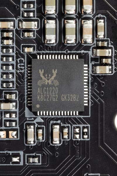 Мы знаем, что практически во всех современных материнских платах звуком заведует аудиокодек Realtek ALC1220. Он обеспечивает вывод звука по схемам до 7.1. В данном случае используется версия Realtek ALC1220-VB.