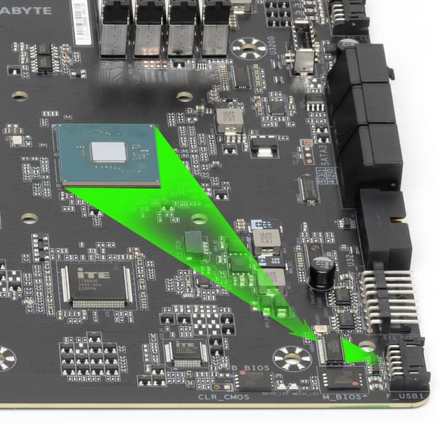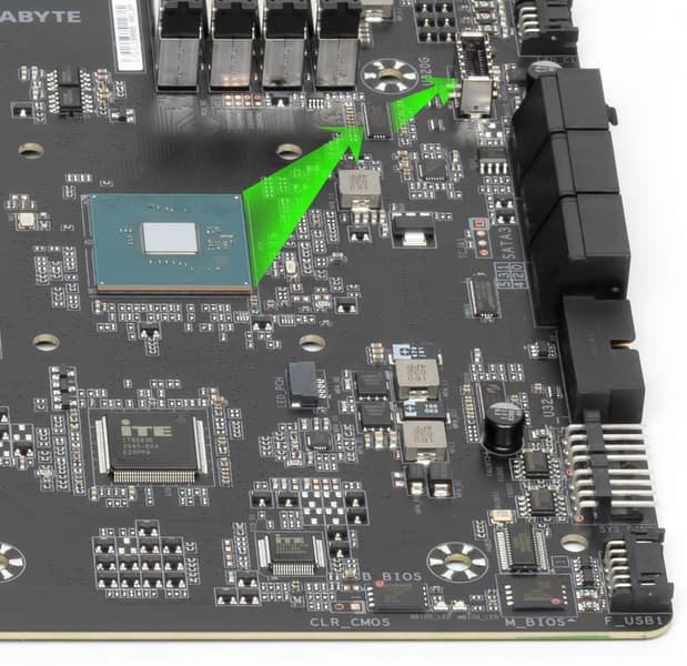 Также плата оснащена самым быстрым на сегодня сетевым проводным 10 Гбит/с контроллером от Marvel (бывш. Aquantia) AQC107.