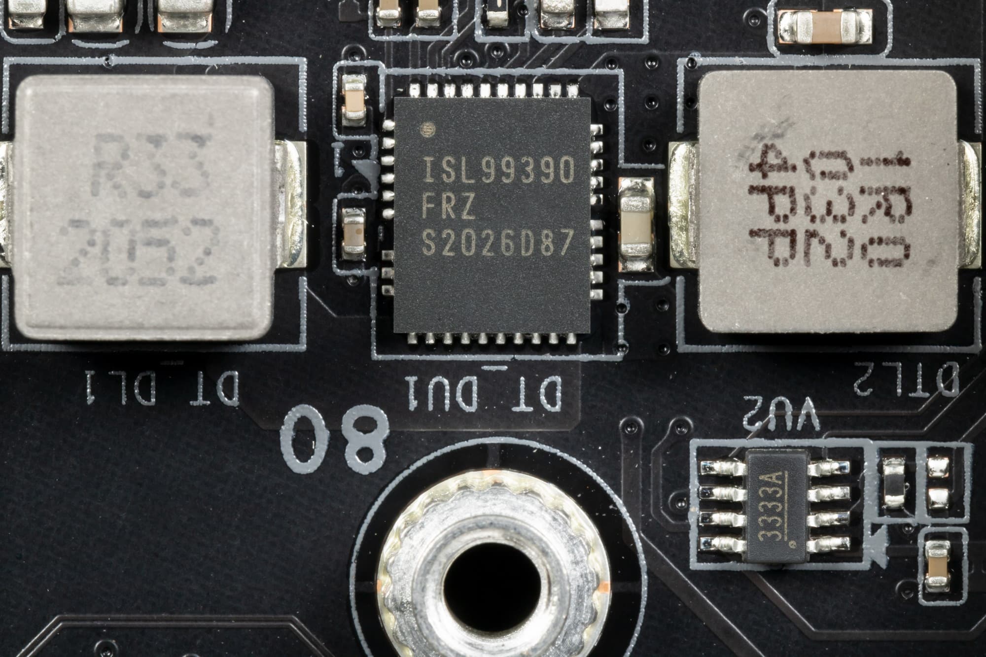 А питание интегрированного графического ядра имеет однофазную схему. И используется мосфет уже другой: ISL99390 от Renesas, рассчитанный на 90 А.