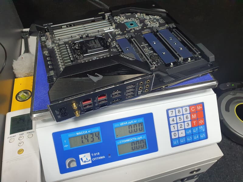 Да, у нас снова материнская плата с водоблоком, и по опыту с аналогом на базе Intel Z490, можно догадаться, что из-за массивной СО и богатого комплекта поставки такой вес брутто. И все же в данном случае рекорд веса комплекта поставки материнской платы был побит!