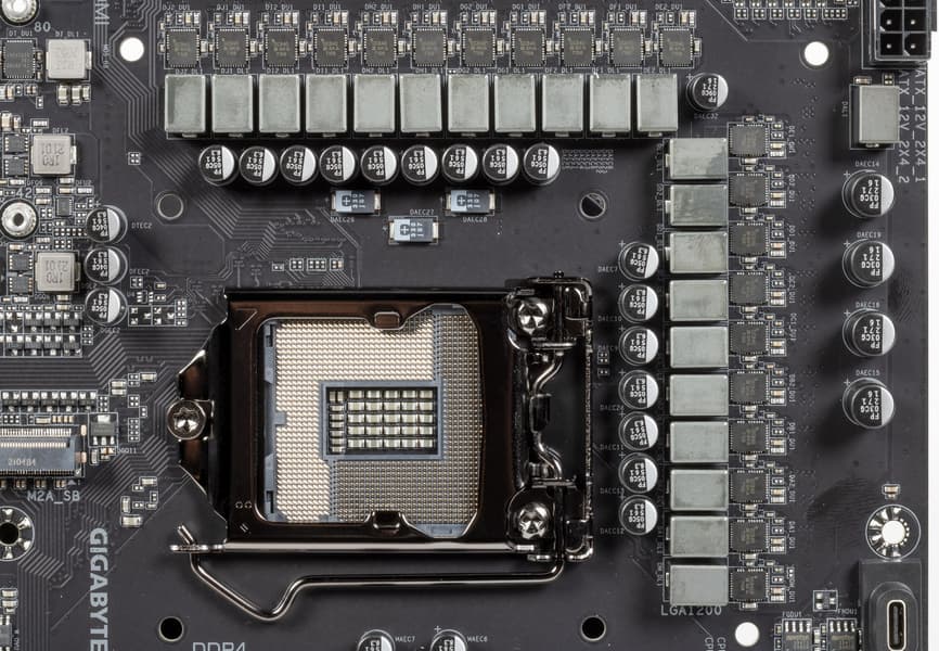 Еще раз надо напомнить, что Gigabyte Z590 Aorus Xtreme Waterforce поддерживает процессоры Intel Core 10-го и 11-го поколения, выполненные под разъем (сокет) LGA1200. Система крепления систем охлаждения для CPU точно такая же, как и для LGA1151.