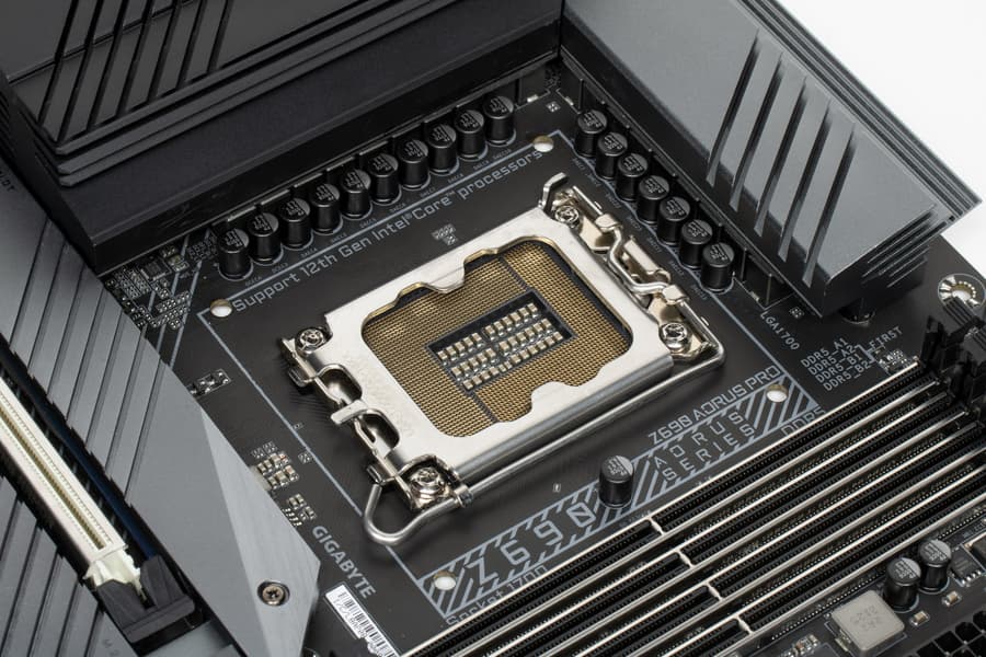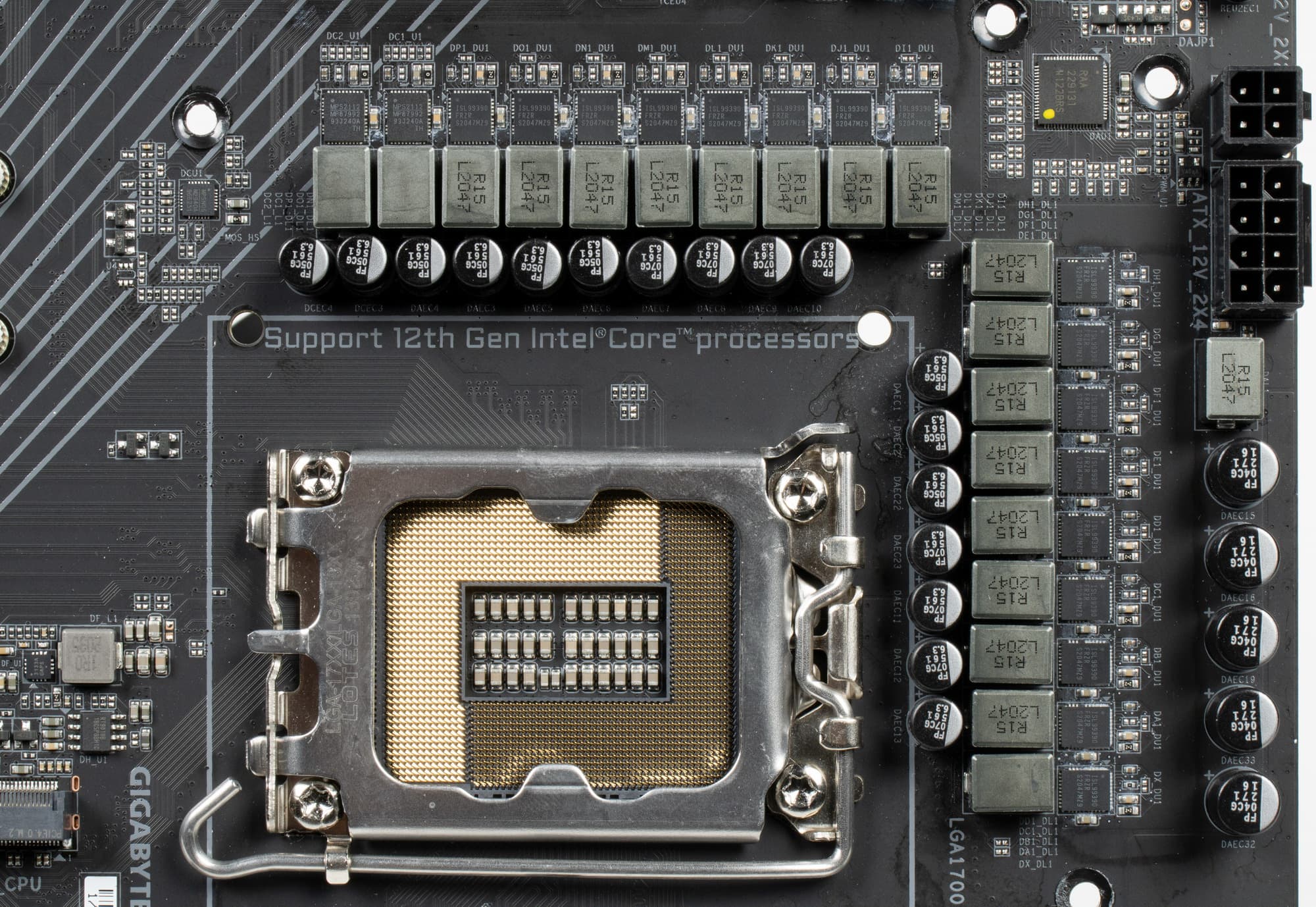 Еще раз надо напомнить, что Gigabyte Z690 Aorus Pro поддерживает процессоры Intel Core 12-го поколения, выполненные под разъем (сокет) LGA1700. Система крепления систем охлаждения для CPU несовместима с той, что для LGA1151/1200. Но при этом следует иметь в виду, что ряд старых СО все же сможет быть применим, лишь придется где-то приобретать или заказывать у производителя комплект крепежа под LGA 1700. Дело в в том, что новые процессоры 12ххх на чуть тоньше предшественников, и кулеры с жесткой установкой в матплате на фиксированную высоту просто не достанут до 12ххх. Подойдут лишь СО с пружинистой посадкой подошвы на процессор.