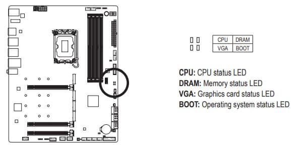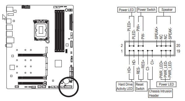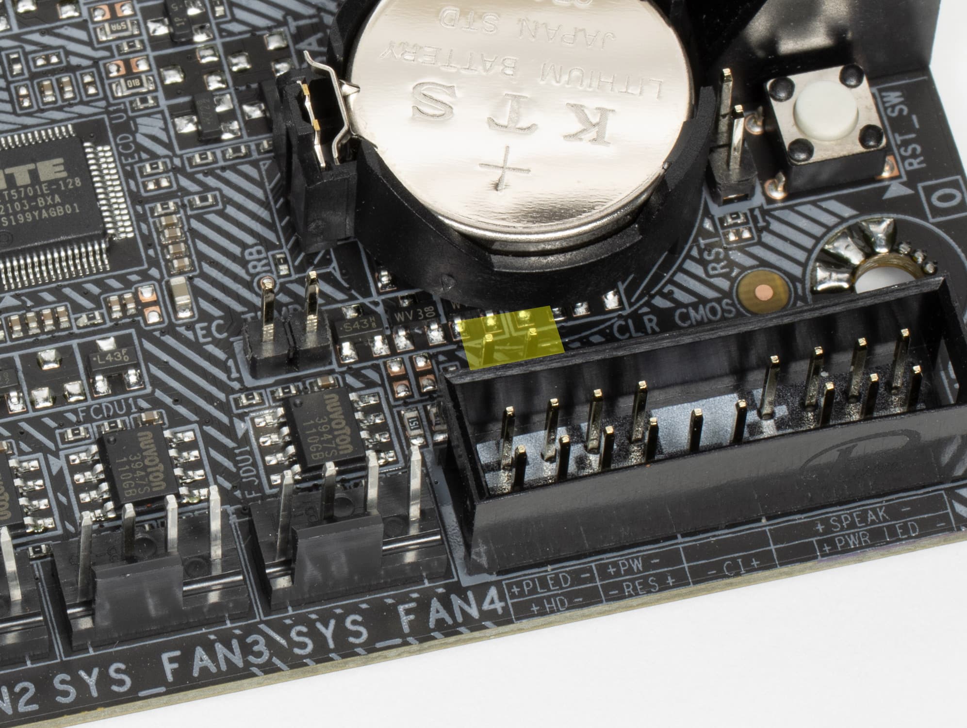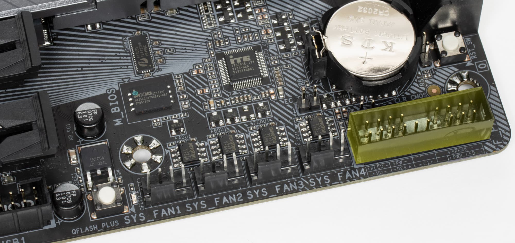 | Прочие внутренние элементы | 24-контактный разъем питания ATX 1 8-контактный разъем питания EPS12V 1 4-контактный разъем питания EPS12V 1 слот M.2 (E-key), занят адаптером беспроводных сетей 1 разъем для подключения порта USB 3.2 Gen2×2 Type-C 1 разъем для подключения 2 портов USB 3.2 Gen1 2 разъемa для подключения 4 портов USB 2.0 8 разъемов для подключения 4-контактных вентиляторов и помп ЖСО 4 разъема для подключения подсветки (2 неадресуемой RGB-ленты и 2 адресуемой ARGB-ленты) 1 разъем для термодатчикa 1 разъем для датчикa шума 1 разъем для подключения адаптера управления с передней панели корпуса 1 кнопка прошивки BIOS Q Flash Plus 1 кнопка запуска 1 кнопка перезагрузки Reset |