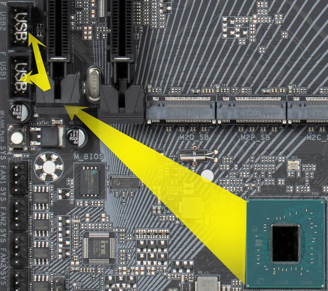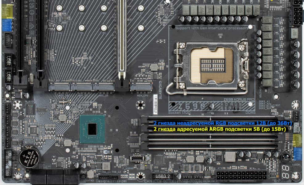 28 линий PCIe оказались занятыми (12 PCIe 4.0 + 16 PCIe 3.0). В чипсете Z690 связь с аудиокодеками идет через USB-порт. Также один USB 2.0 расходуется на поддержку BT (при наличии слота M.2 (key E) и контроллеры IT8851 и GL850 для своих нужд использует сигнальные линии USB 2.0 Детально об этом ниже в разделе USB-портов.