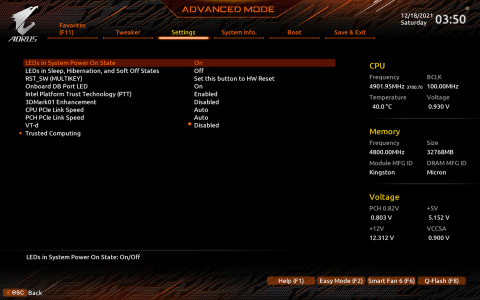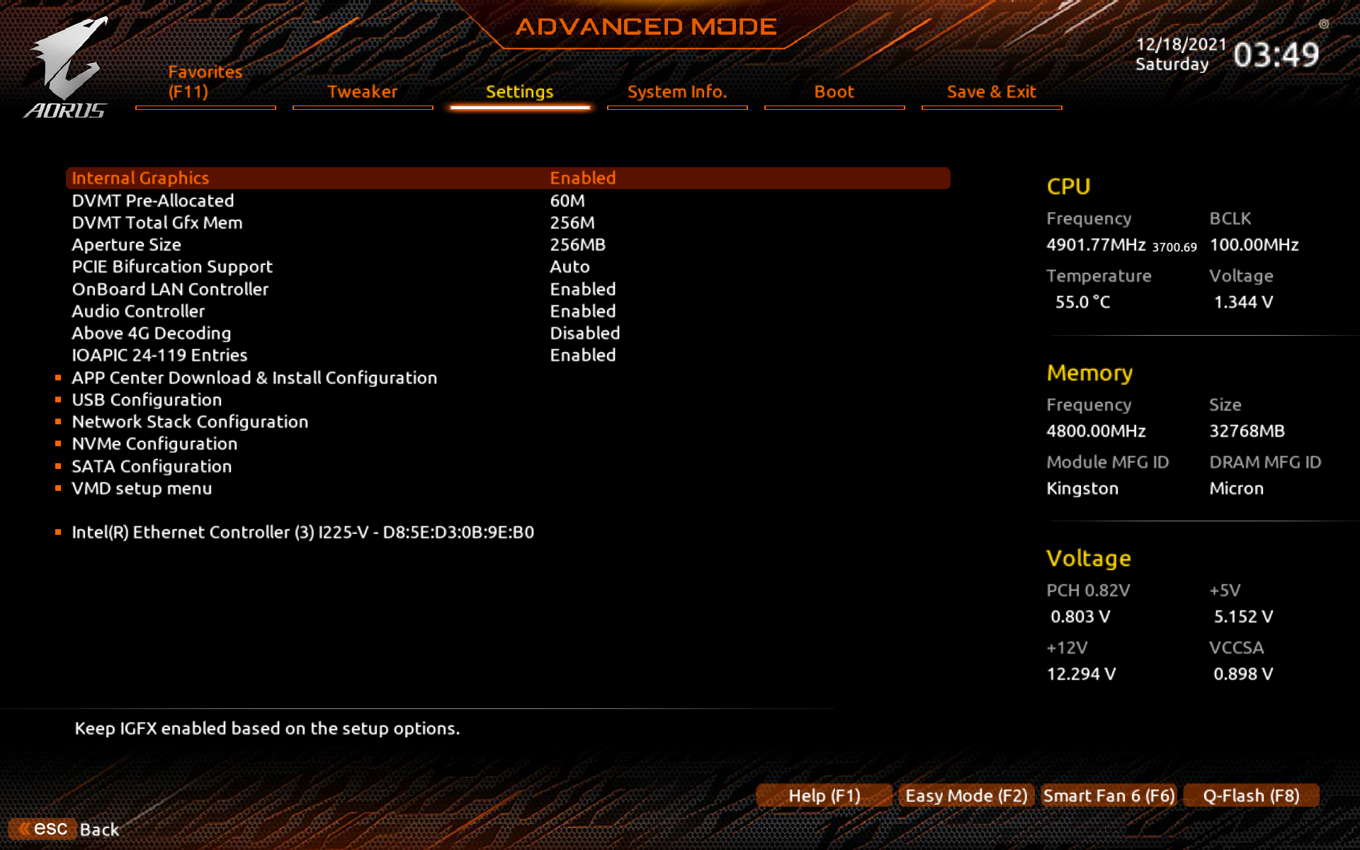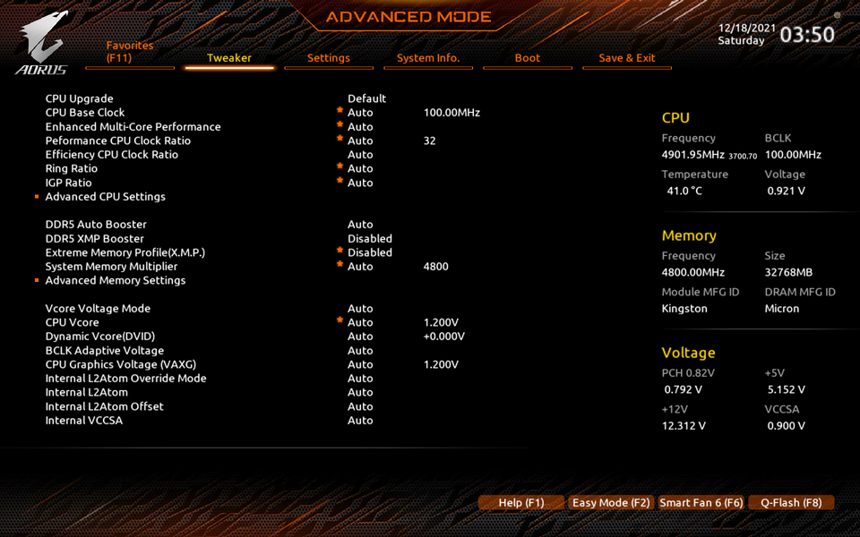 Да, казалось бы, это вовсе не 5 ГГц и выше, как мы видели у флагманских игровых решений. Но и материнка у нас, хоть и игровая, но на экстремальный оверклокинг не рассчитана. К тому же для 12900К и 4.9 ГГц — это очень хорошо, да еще и по умолчанию! Если кому-то маловато, то можно вручную в настройках BIOS пошаманить.