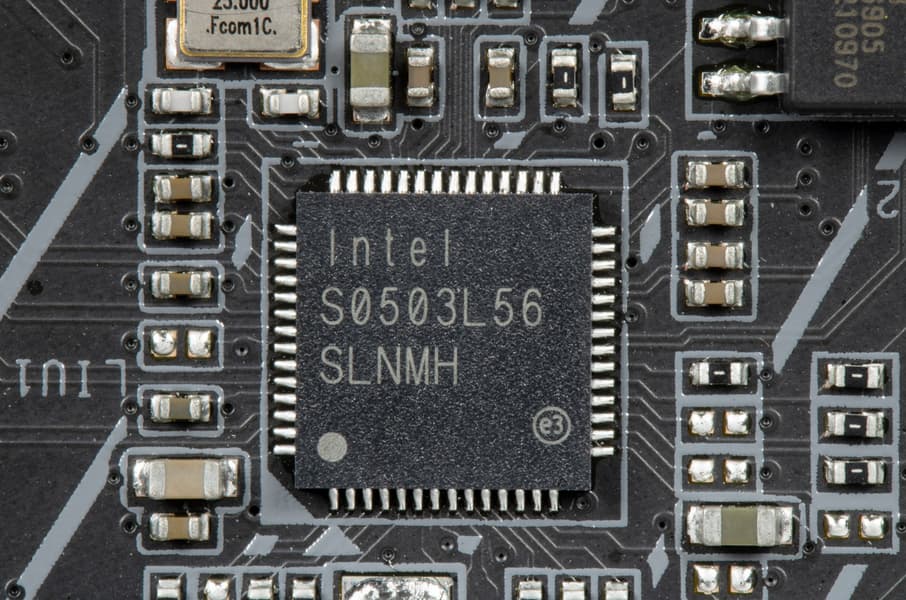 Материнская плата оснащена средствами связи неплохо. Имеется скоростной Ethernet-контроллер Intel I225-V, способный работать по стандарту 2,5 Гбит/с.