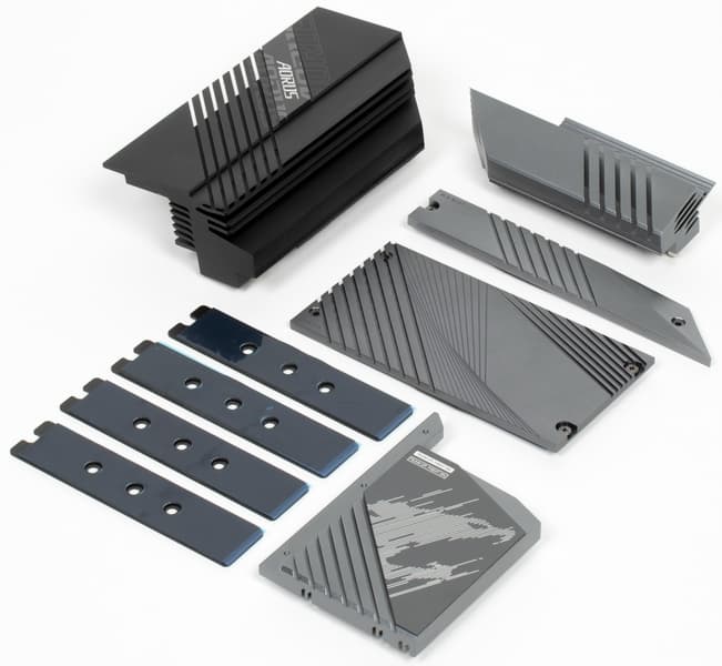 Все M.2 слоты имеют радиаторы. Верхний M2A_CPU обладает отдельным радиатором, когда как остальные слоты M.2 имеют общий радиатор.