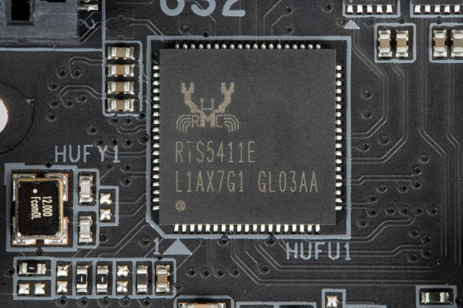 - 6 портов USB 3.2 Gen1: 4 реализованы через контроллер Realtek RTS5411 (на него потрачена 1 линия PCIe) и представлены 4 портами Type-A на задней панели (синие); остальные два реализованы через второй Realtek RTS5411 (на него потрачена 1 линия PCIe) и представлены внутренним разъемом на материнской плате на 2 порта;
