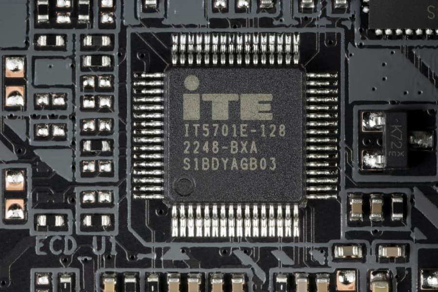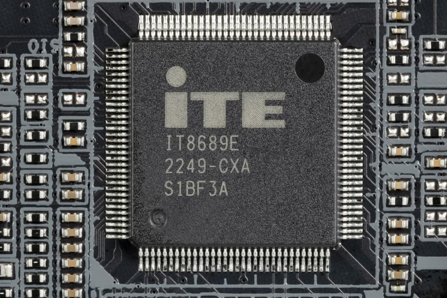 Мы знаем, что уже достаточно давно в большинстве современных материнских платах звуком заведовал аудиокодек Realtek ALC1220. В целом обеспечивает вывод звука по схемам до 7.1 с разрешением до 24 бит / 192 кГц. Мы видели уже и ALC4082 того же производителя с улучшенными характеристиками 32 бит / 384 кГц. Однако в данном случае мы видим возврат к прежнему ALC1220, а также схема вывода упрощена до 5.1. Сам чип накрыт металлической крышкой.