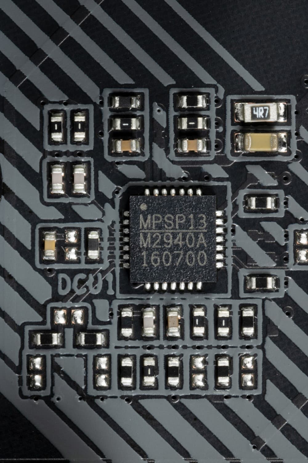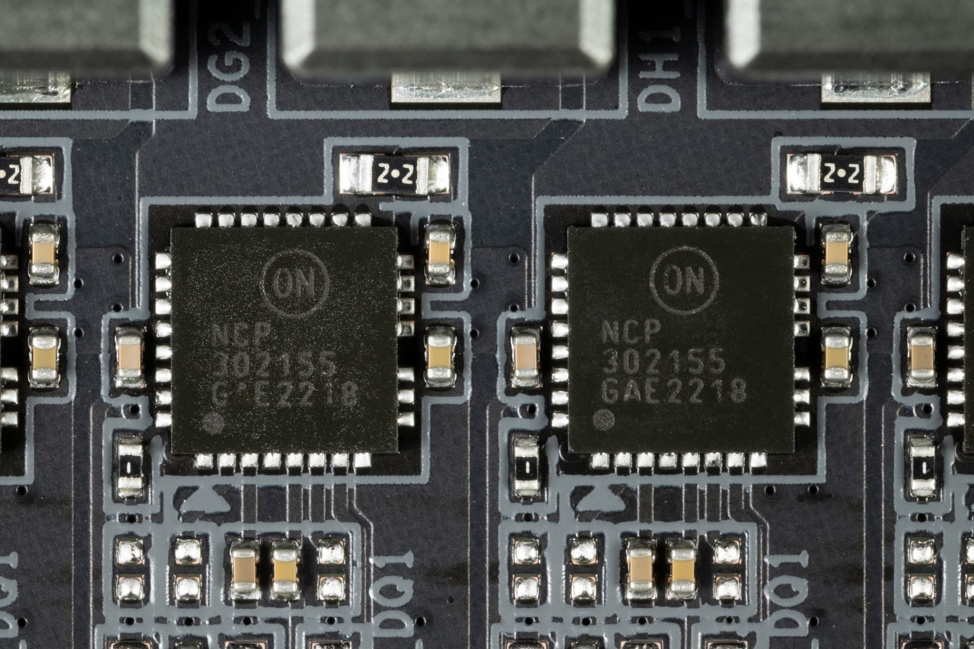 Каждый канал фазы VCore и iGPU имеет суперферритовый дроссель и DrMOS NCP302155 (55 A) On Semi.