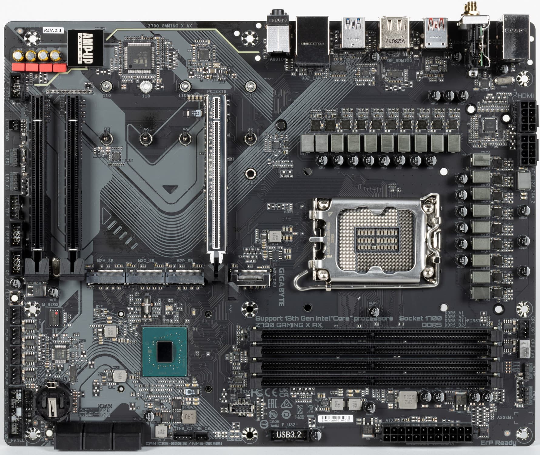 Еще раз надо напомнить, что Gigabyte Z790 Gaming X AX поддерживает процессоры Intel Core 12/13-го поколений, выполненные под разъем (сокет) LGA1700.