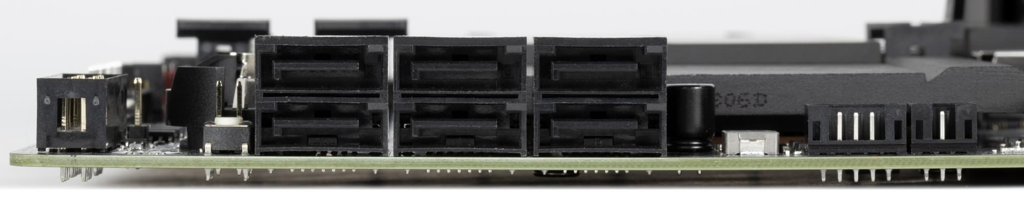 Всего у платы 6 разъемов Serial ATA 6 Гбит/с + 4 слота для накопителей в форм-факторе M.2. Все порты SATA 2,3,4,5,6,7 реализованы через чипсет Z790 и поддерживают создание RAID.