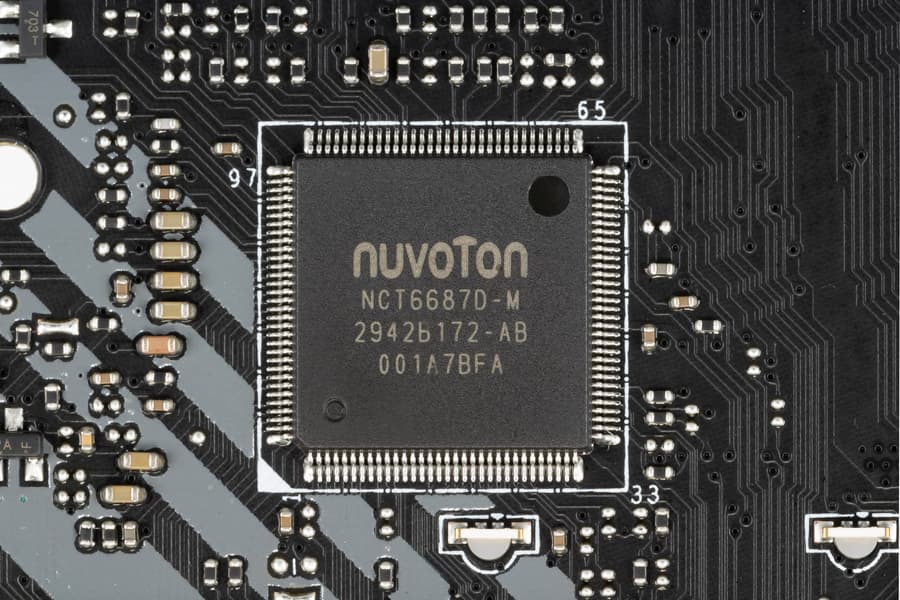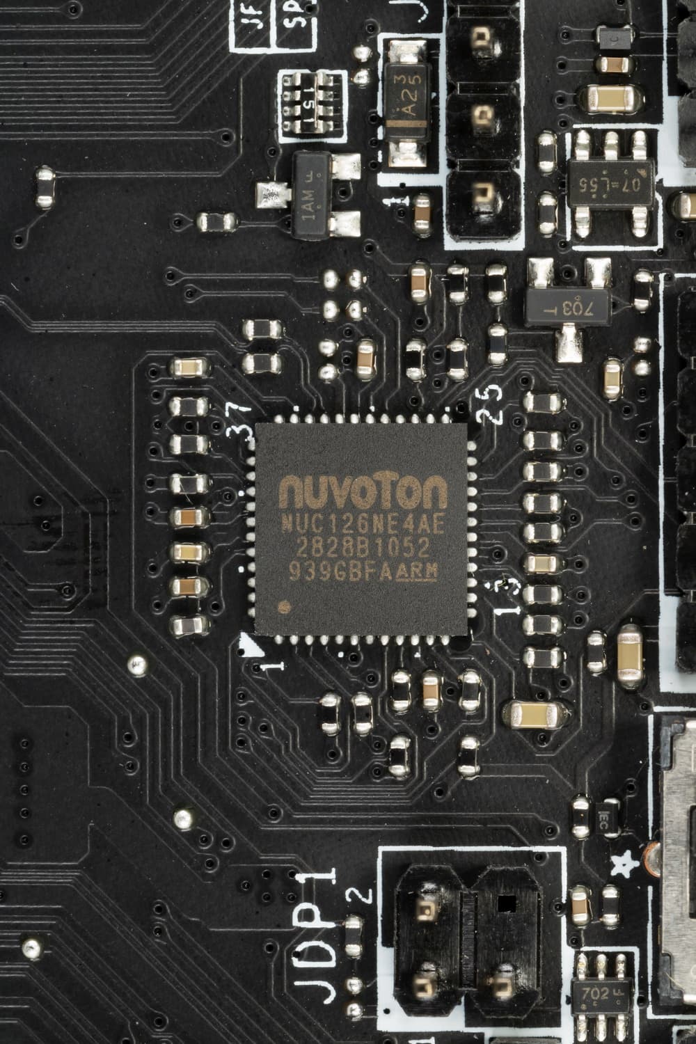 За мониторинг платы отвечают два небольших контроллера от Nuvoton (включая вышеупомянутый NUC126). C ними связан Nuvoton NCT6687D, который контролирует работу всех гнезд СО, также в его ведении Multi I/O.