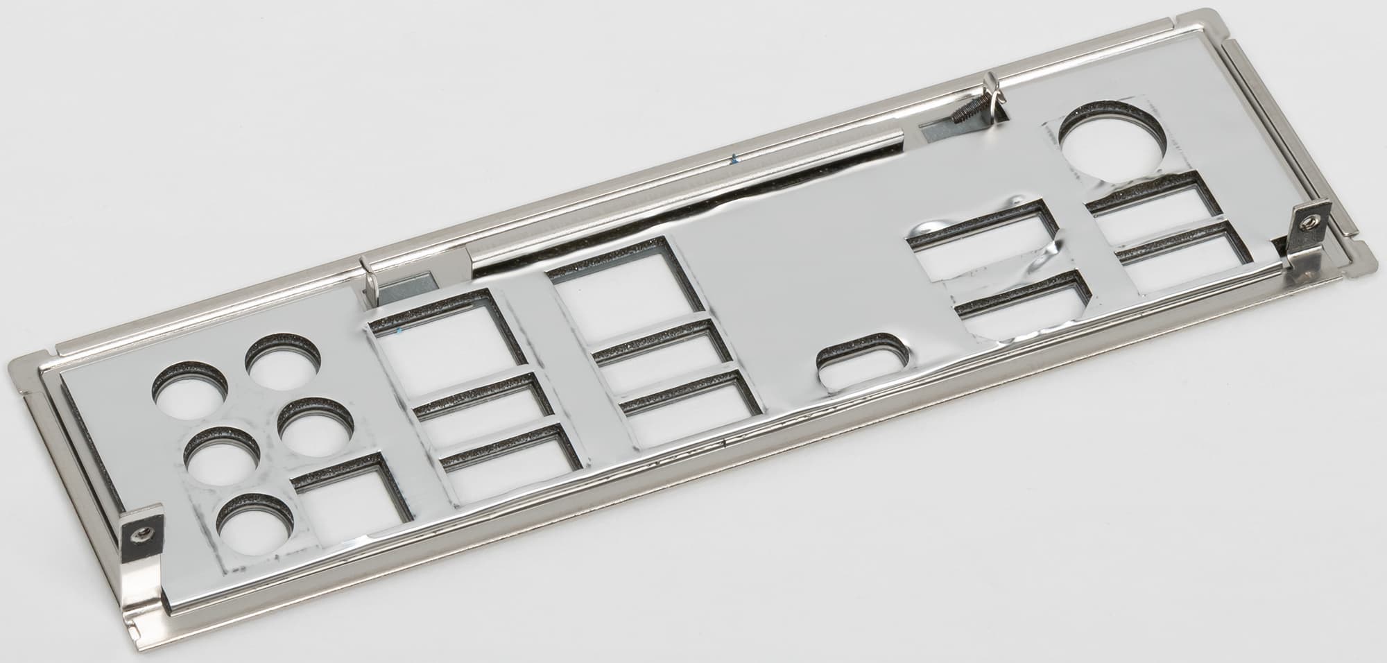 Заглушка, традиционно надеваемая на заднюю панель, в данном случае уже надета, и изнутри экранирована для снижения электромагнитных помех.