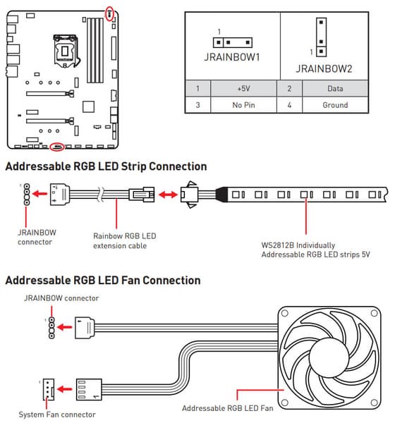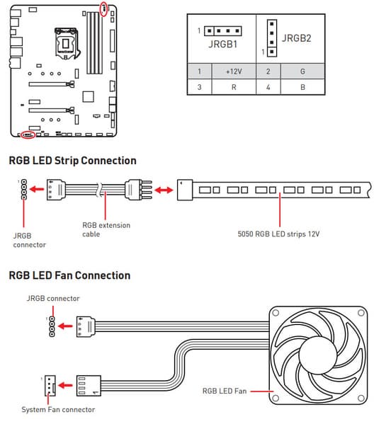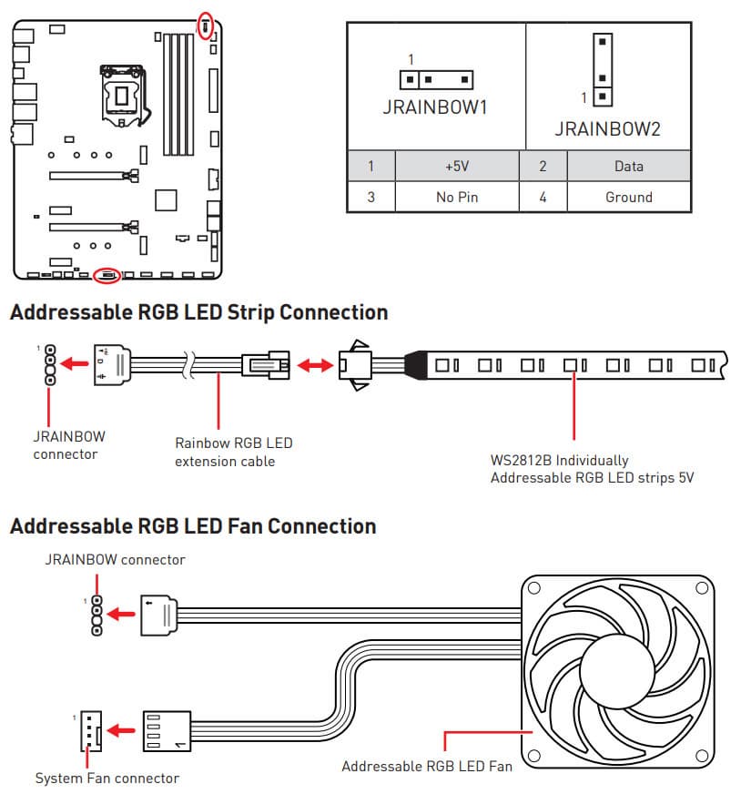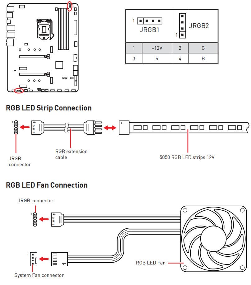 Схемы подключения стандартны для всех материнских плат, поддерживающих подсветку: