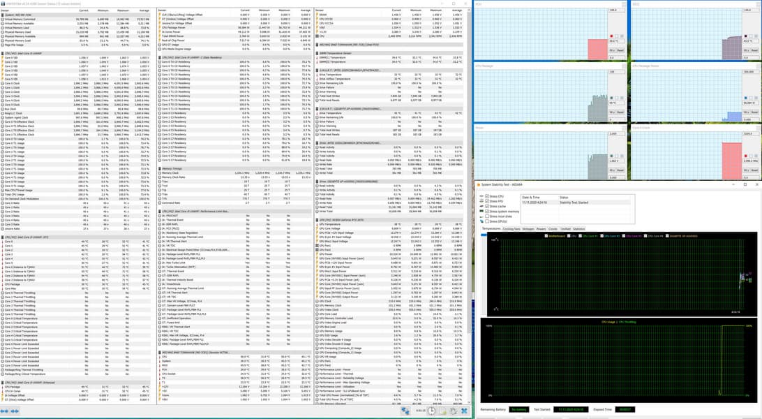 Несмотря на отсутствие поддержки оверклокинга, все же Intel Turbo Boost никто не отменял (правда данным процессором, как и B460 поддерживается только до TB 2.0). Поэтому мы видим, что TB сразу поднял частоты всех ядер до 3,9 — 4,0 ГГц (частоты менялись по ядрам). При этом все параметры работы держались в норме, все вышеуказанные тесты прошли без проблем. Несмотря на наличие очень быстрой оперативной памяти, поднять ее частоту выше 2666 МГц оказалось невозможным (ну просто полное соответствие спецификациям B460). Нагрев блока VRM и чипсета B460 не превышал 40-50 °C, необычных явлений не замечено. Максимальное потребление процессором достигло величины в 57 Вт.