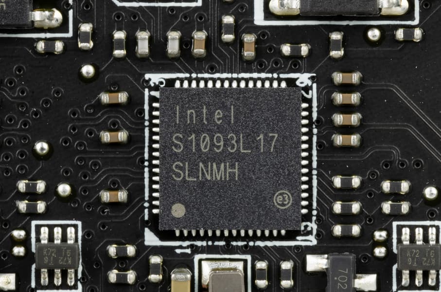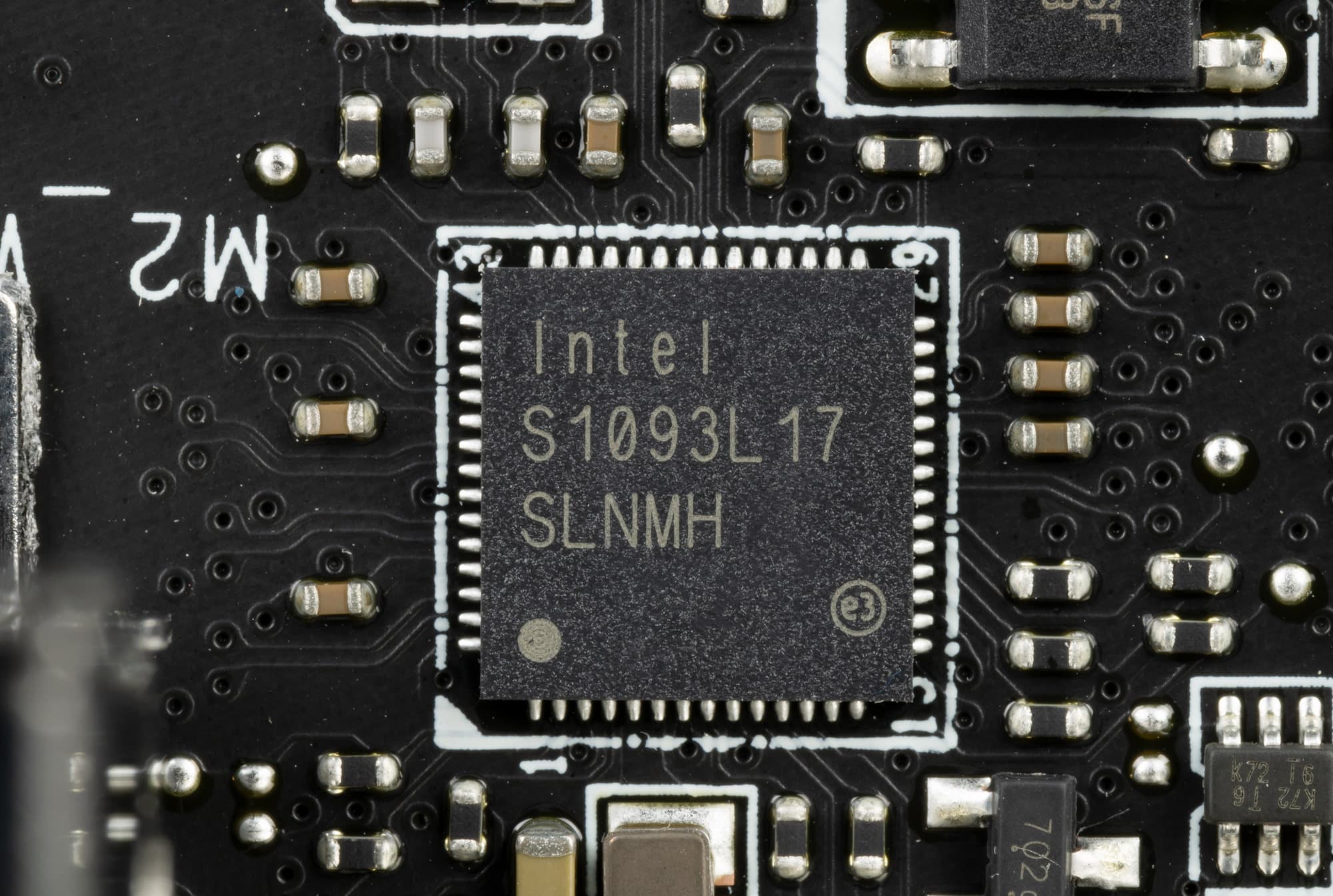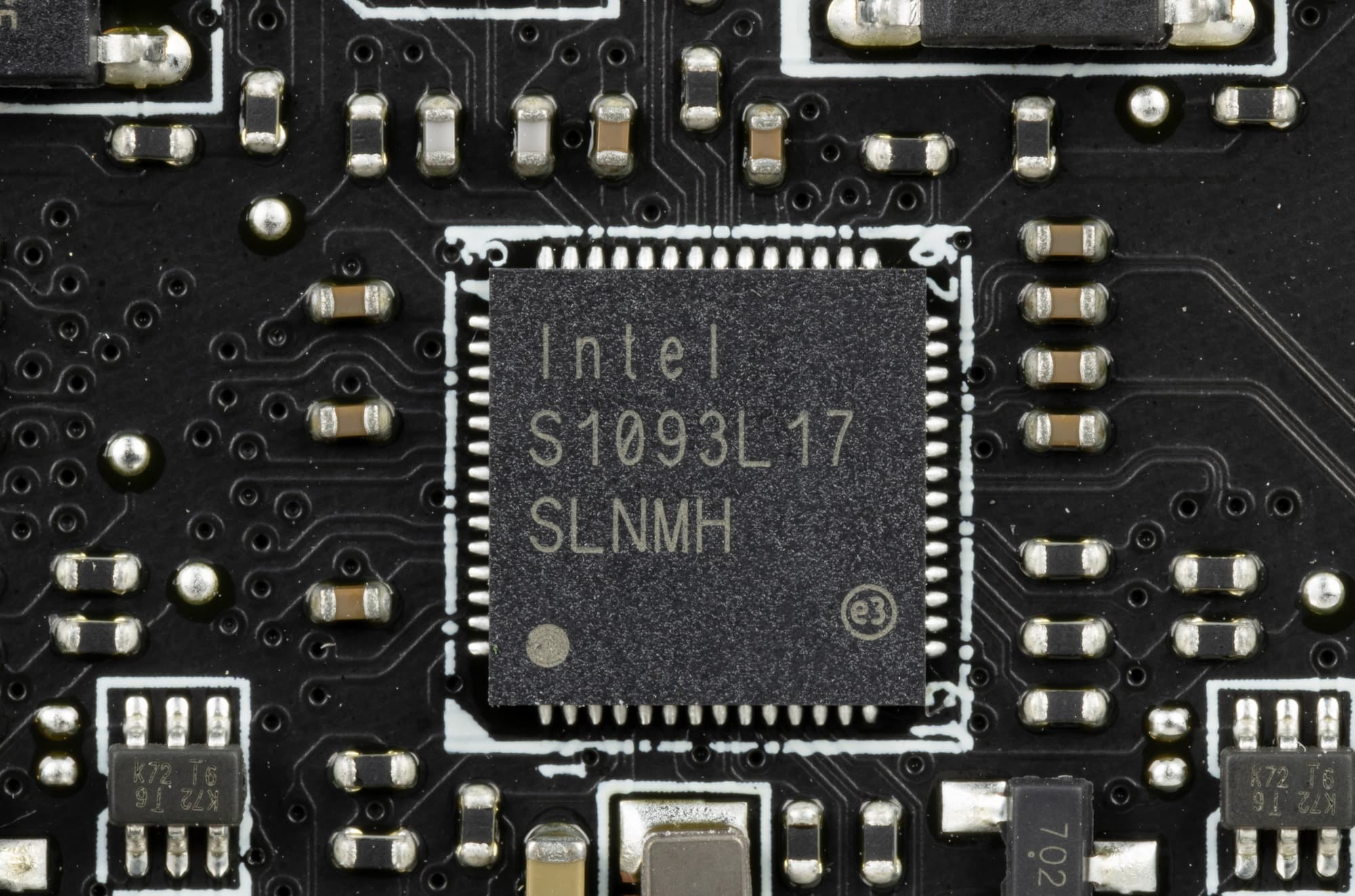 Материнская плата оснащена средствами связи отлично. Имеется два скоростных Ethernet-контроллера Intel I225-V, каждый из который способен работать по стандарту 2,5 Гбит/с.