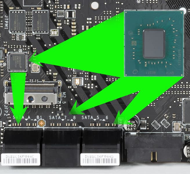 Остальные 2 порта SATA A/B реализованы через ASM1061 от ASMedia.