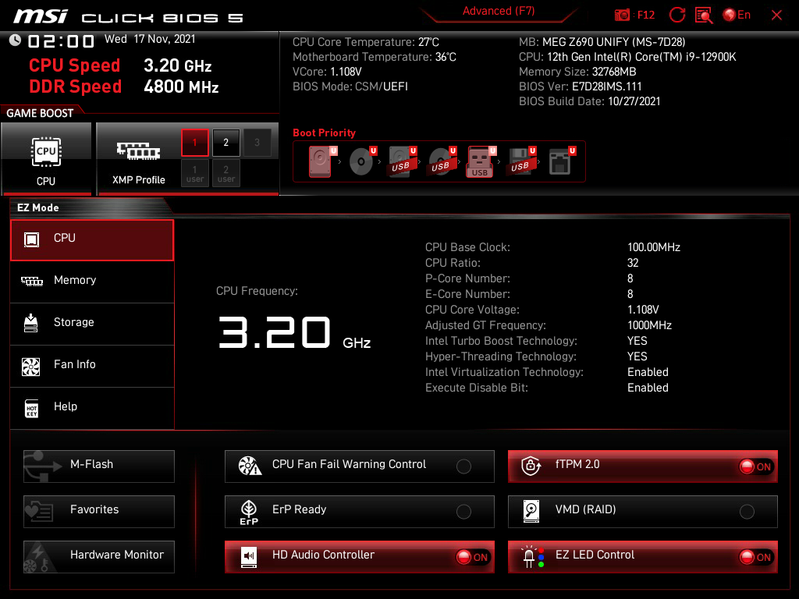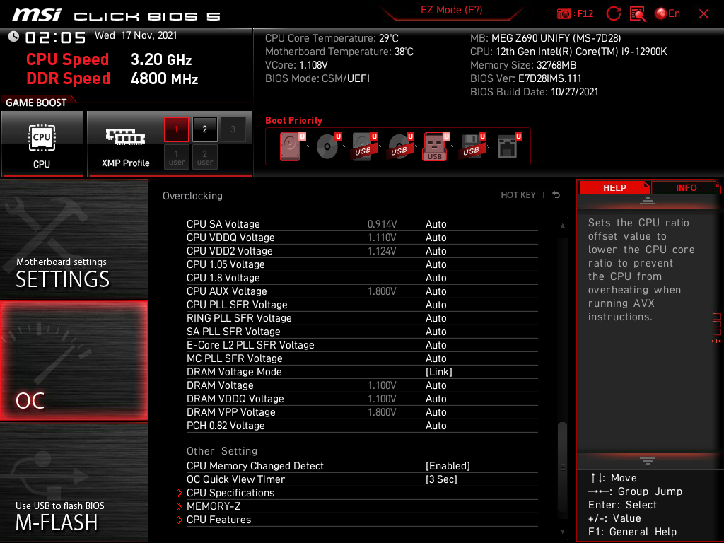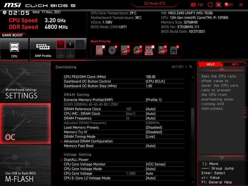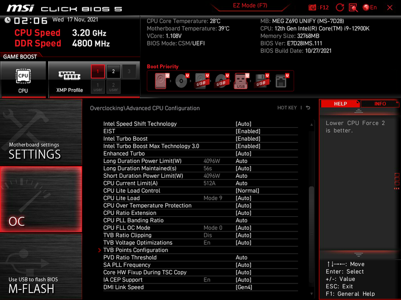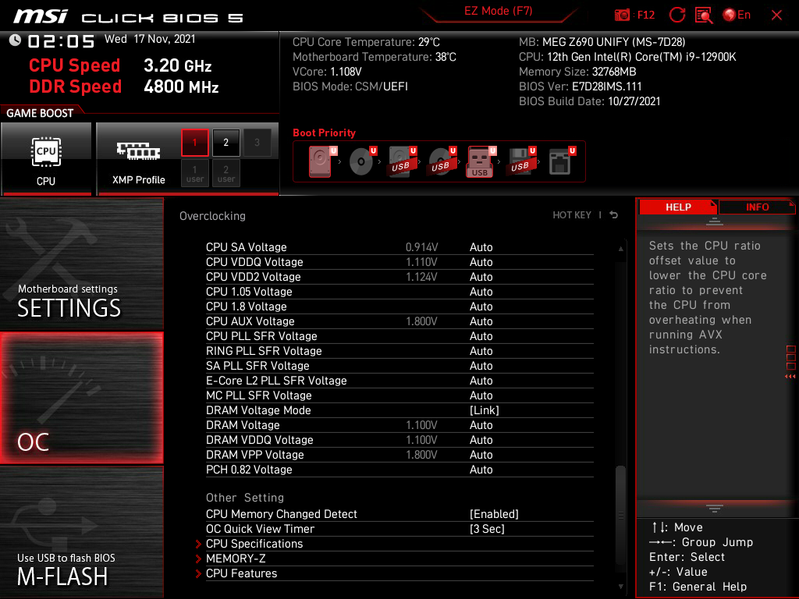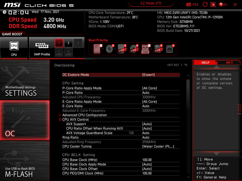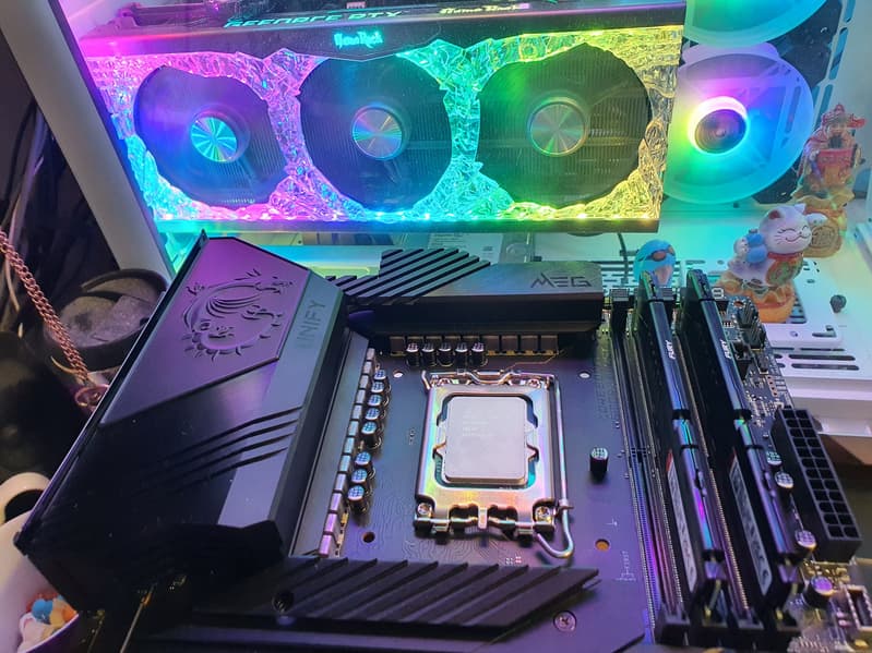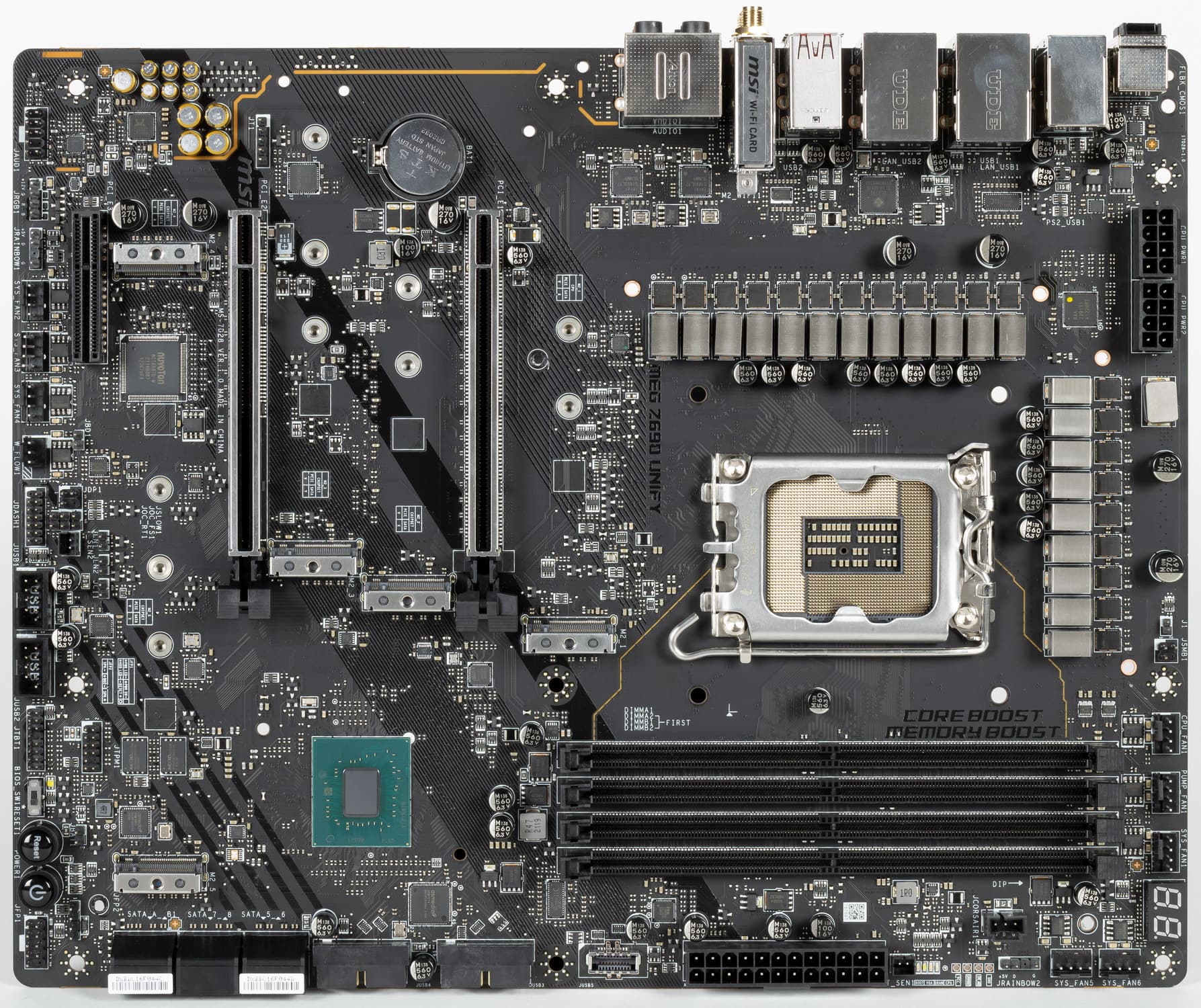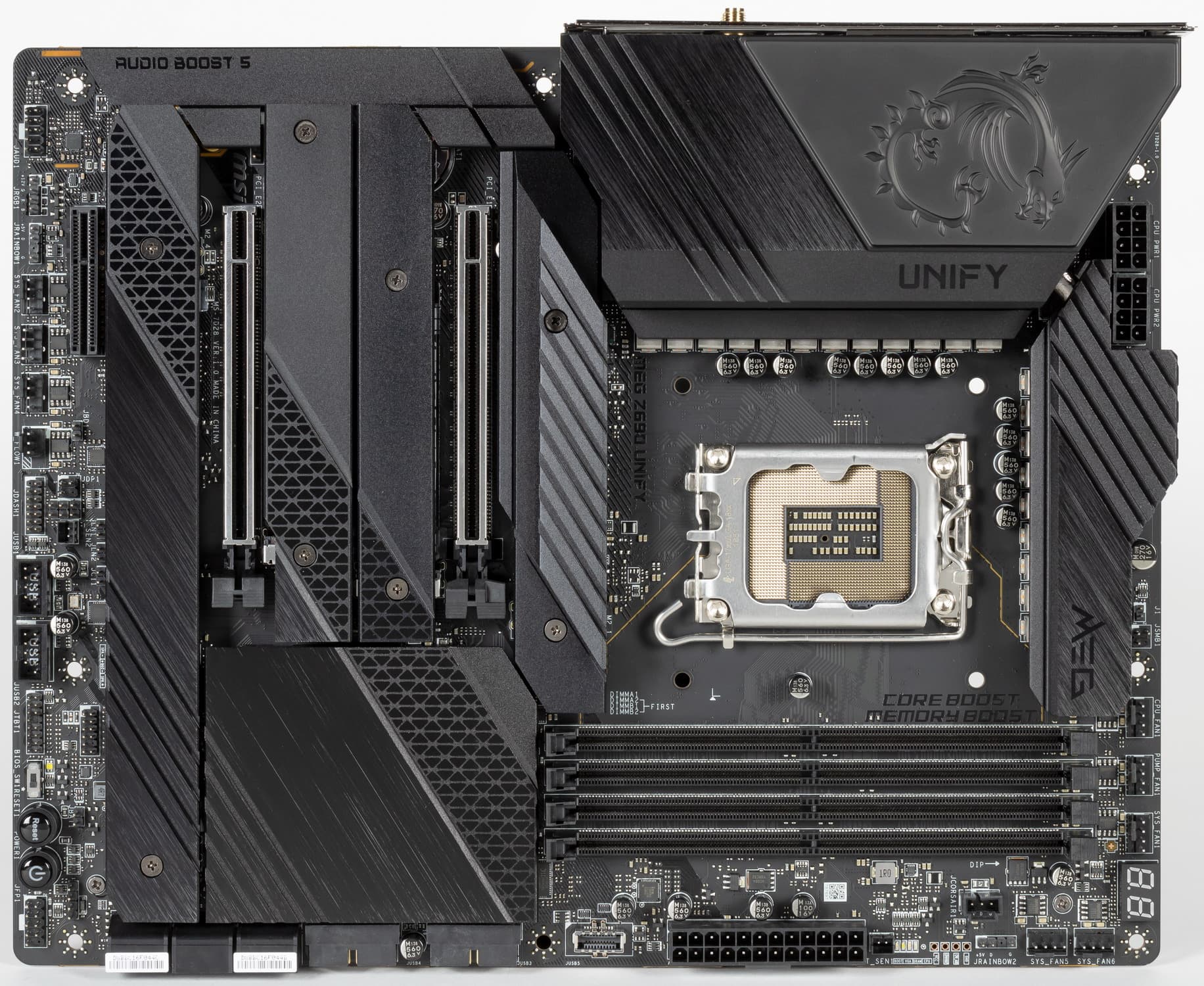 Еще раз надо напомнить, что MSI MEG Z690 Unify поддерживает процессоры Intel Core 12-го поколения, выполненные под разъем (сокет) LGA1700. Система крепления систем охлаждения для CPU несовместима с той, что для LGA1151/1200. Но при этом следует иметь в виду, что ряд старых СО все же сможет быть применим, лишь придется где-то приобретать или заказывать у производителя комплект крепежа под LGA 1700. Дело в в том, что новые процессоры 12ххх на 0.8 мм тоньше предшественников, и кулеры с жесткой установкой в матплате на фиксированную высоту просто не достанут до 12ххх. Подойдут лишь СО с пружинистой посадкой подошвы на процессор.