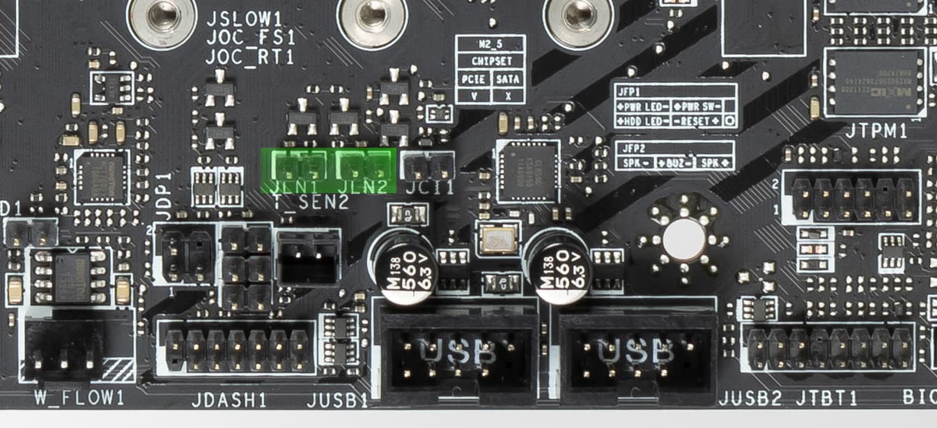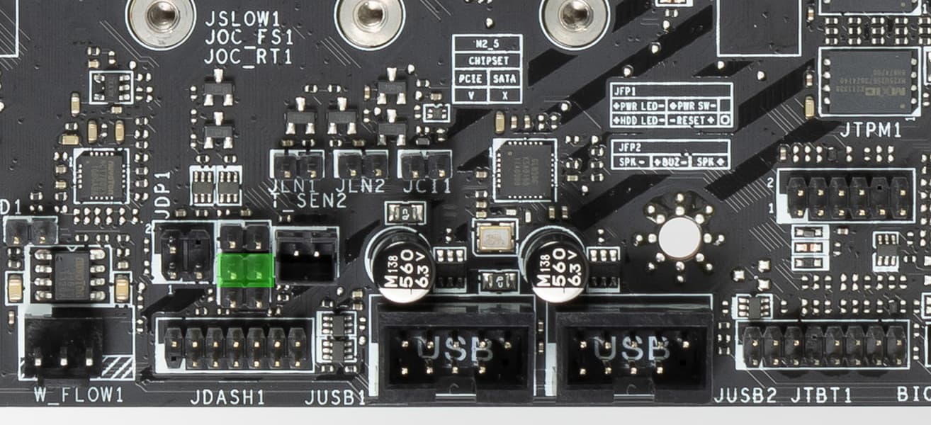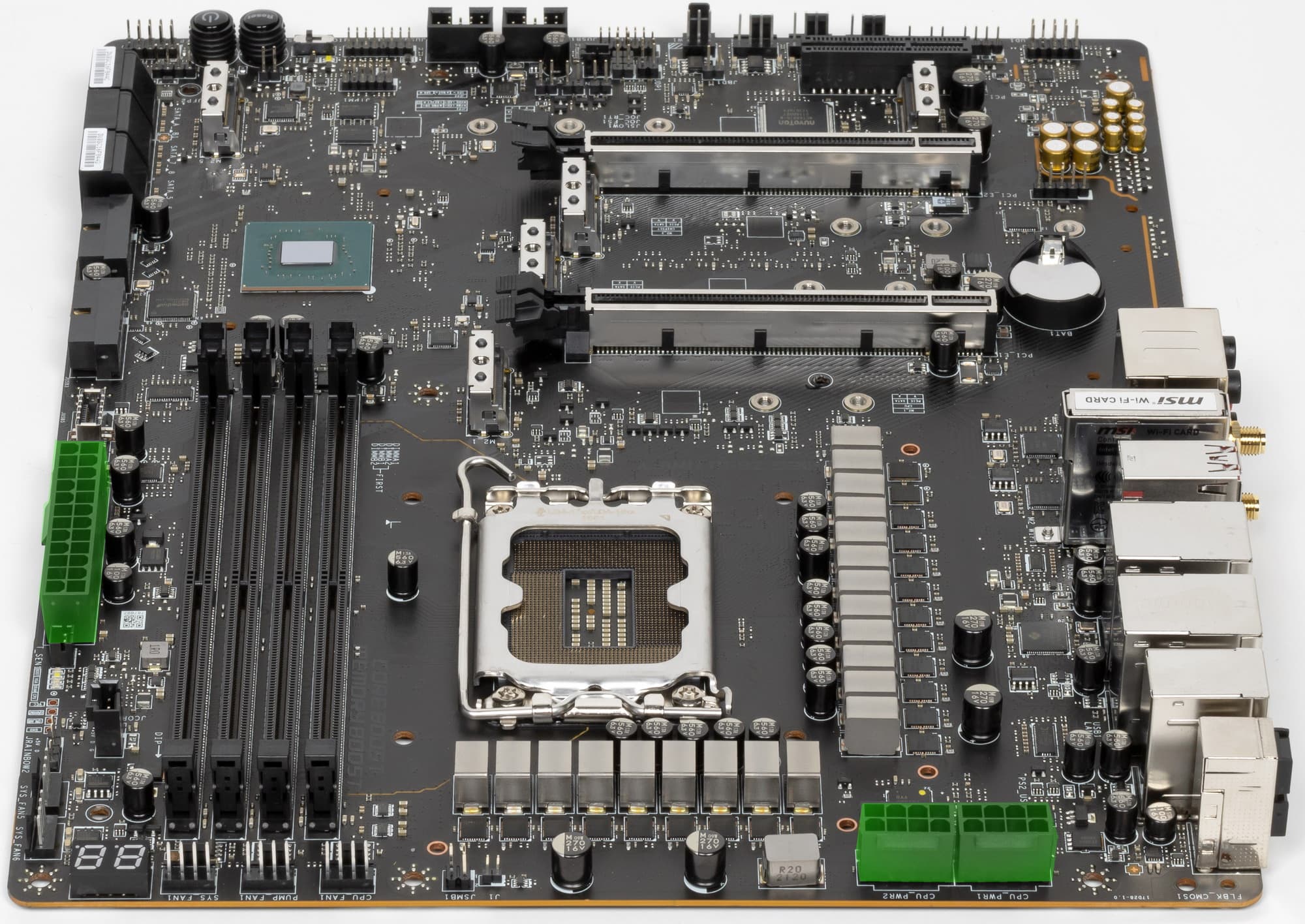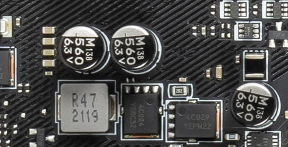 Каждый канал фазы имеет суперферритовый дроссель и RAA 22010540 MOSFET от Renesas на 105 А для VCore и встроенного графического ядра и MP87992 от Monolithic Power Systems для VCCIO на 70А.
