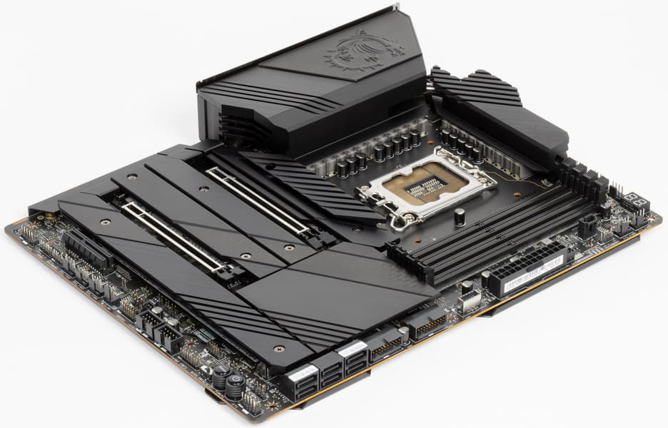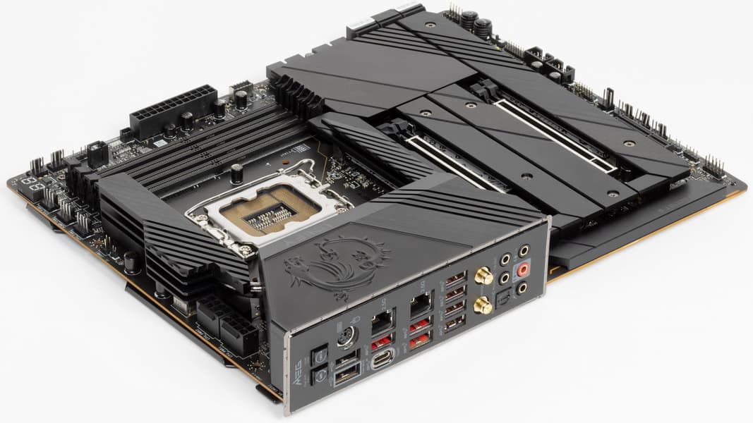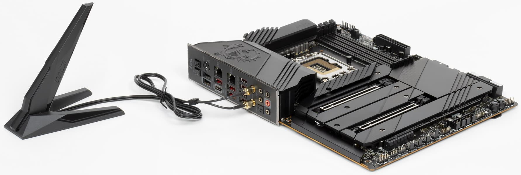 Так вот, весь этот огромный ящик с сопутствующим содержимым — для того, чтобы обозреватели могли полноценно проверить, протестировать и восхититься новым черным чудом — MSI MEG Z690 Unify. Да, эта материнка из семейства MEG (MSI Enthusiast Gaming), которая, несмотря на полное отсутствие подсветки (это как раз фирменная «фишка»), относится к топовым.