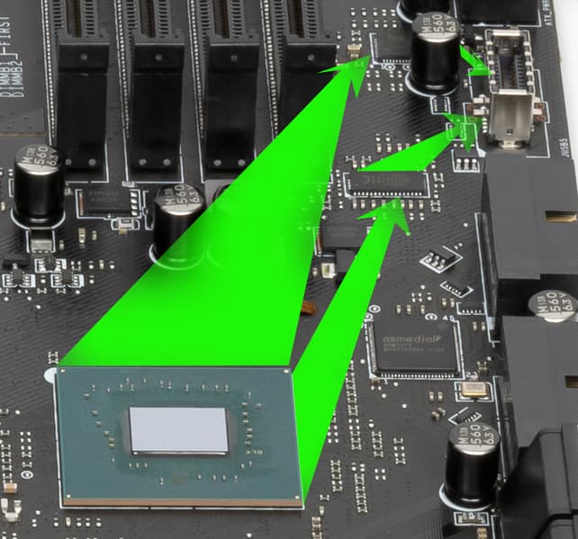 - 1 выделенный USB 3.2 Gen2x2 (не в счет, ибо получен засчет других HSIO);