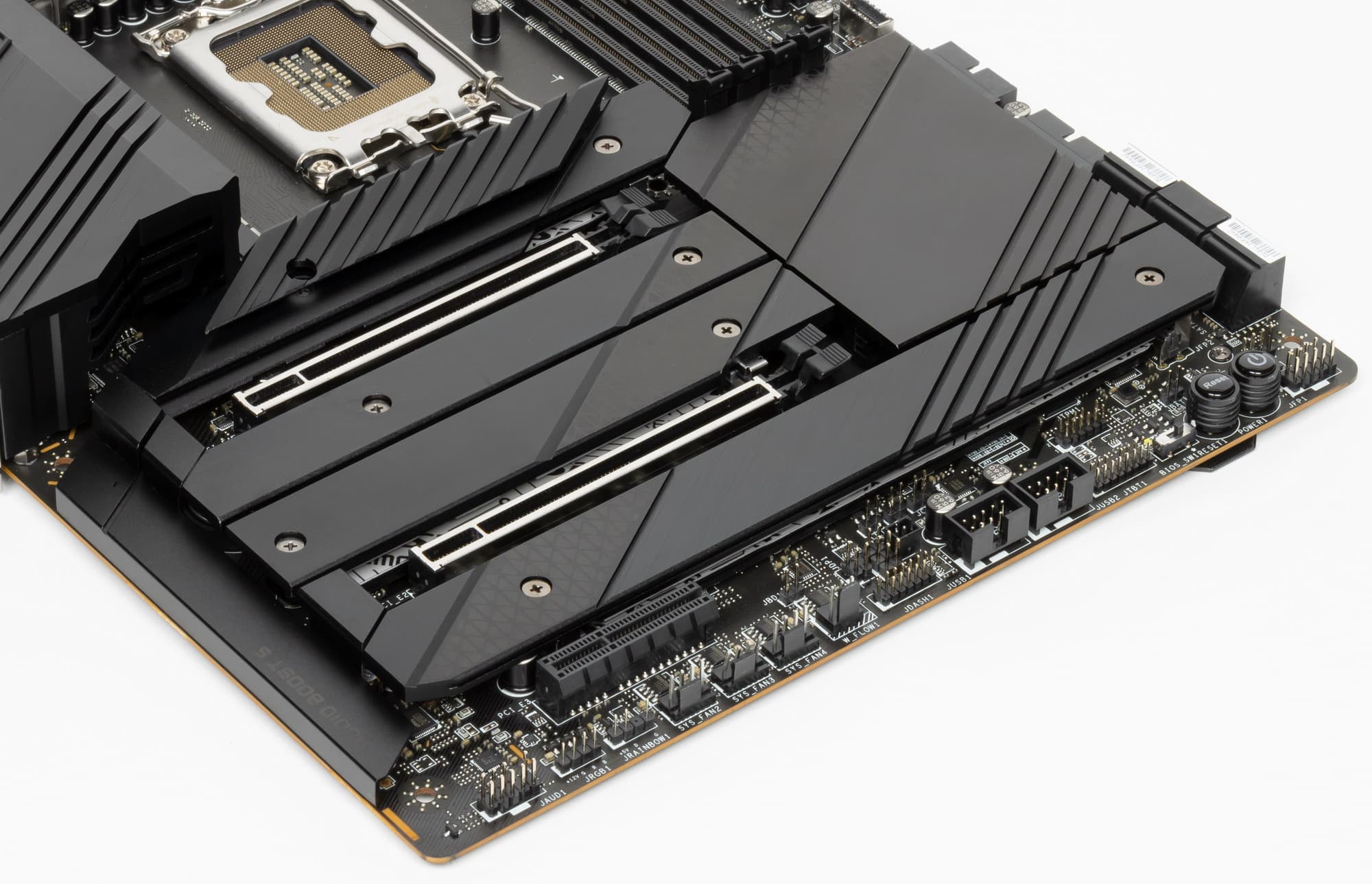 Как я уже упоминал ранее, M.2 слоты также имеют радиаторы: у М.2_1, 2_2, 2_3 — свои персональные радиаторы, а М.2_4 и М.2_5 имеют свой общий радиатор.