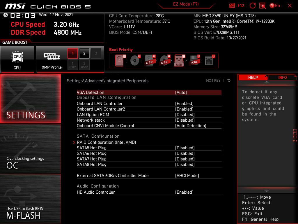 Все 28 линий PCIe оказались занятыми (12 PCIe 4.0 + 16 PCIe 3.0). В чипсете Z690 связь с аудиокодеками идет через USB-порт. Также один USB 2.0 расходуется на поддержку BT (при наличии слота M.2 (key E) и контроллеры GL850G/GL3590/ASM1074 для своих нужд использует сигнальные линии USB 2.0 Детально об этом ниже в разделе USB-портов.