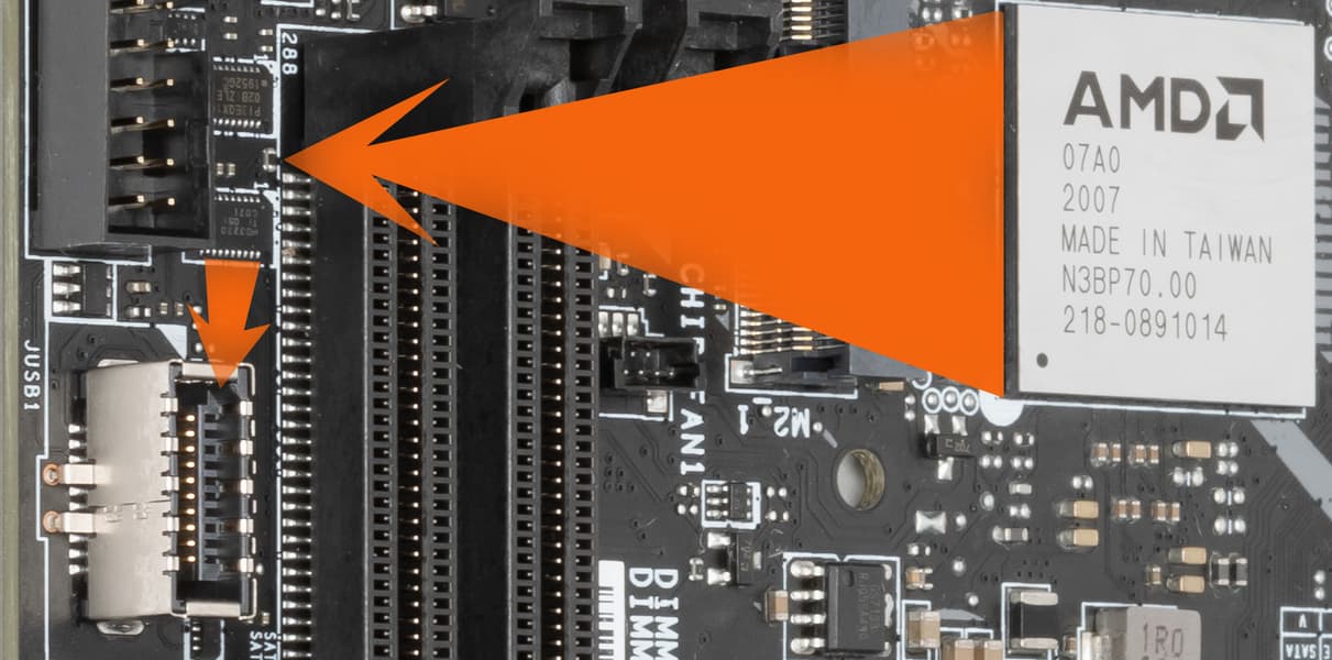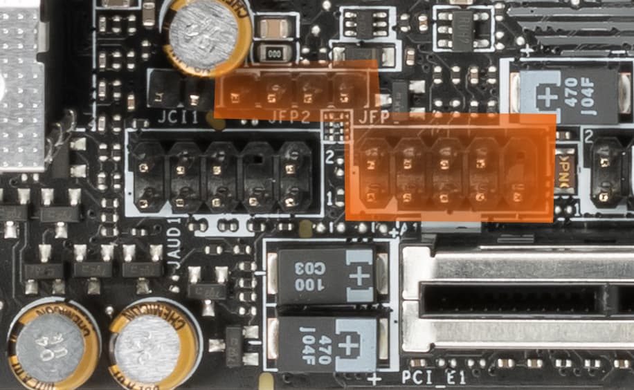 Разработчики совершили глупость, разместив эти гнезда выше слота PCIe x16, поскольку провода от корпуса придется тянуть вдоль матплаты или перед слотом под видеокартой.