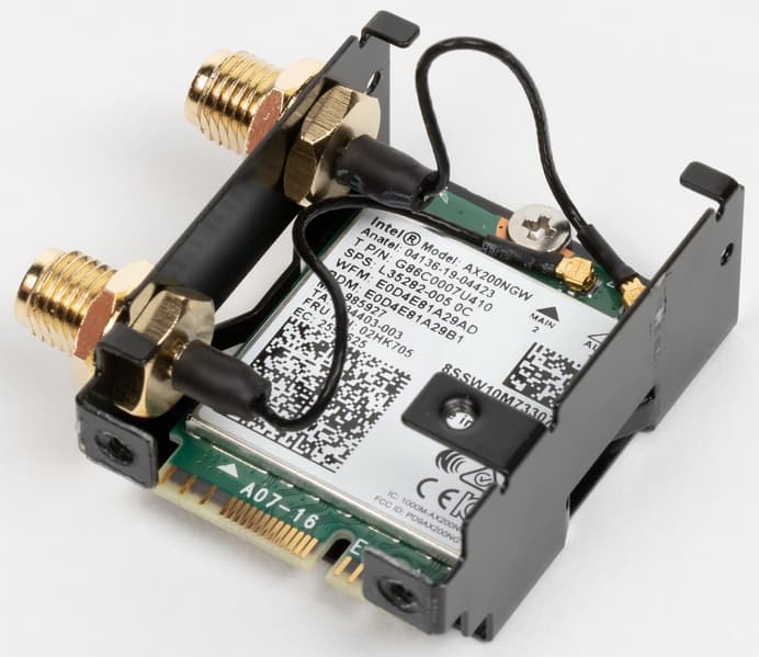 | Сетевые контроллеры | 1 × Realtek RTL8125B Ethernet 2,5 Гбит/с 1 × Intel Dual Band Wireless AX200NGW/CNVi (Wi-Fi 802.11a/b/g/n/ac/ax (2,4/5 ГГц) + Bluetooth 5.0) |
