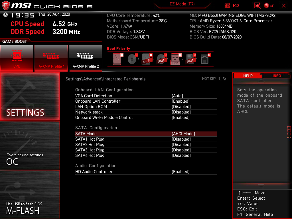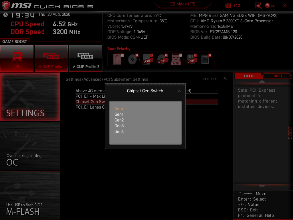 Несмотря на то, платы в серии MPG обычно оснащаются подсветкой (пусть и не супер-помпезной, как у MEG), в данном случае ее на очень маленькой плате нет вообще. Разумеется, мы помним про разъем для подключения внешней ARGB подсветки, и уже ею можно управлять через программу Dragon Center.