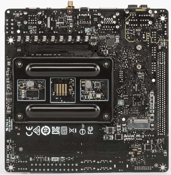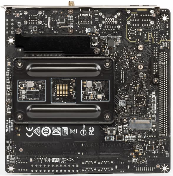 VRM-секция имеет свой большой радиатор. Кроме того, с оборотной стороны есть дополнительная пластина охлаждения этой области печатной платы.