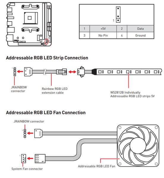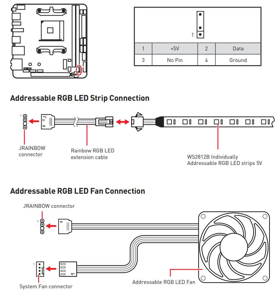 Схемы подключения стандартны для всех материнских плат, поддерживающих подсветку: