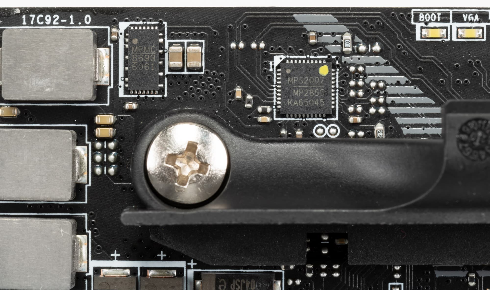 ШИМ-контроллером выступает процессор также от MPS — MP2855, рассчитанный максимум на 10 фаз.