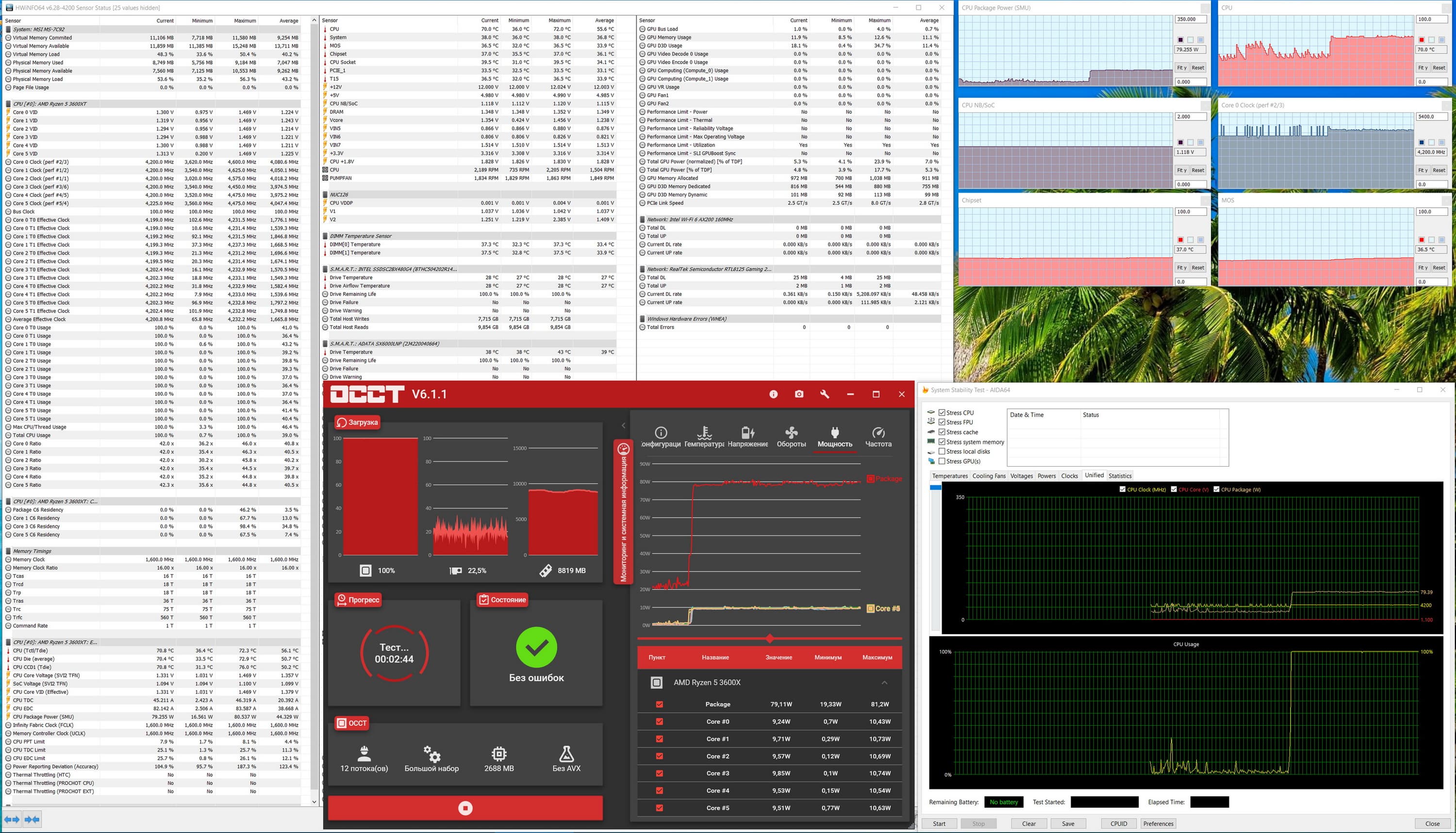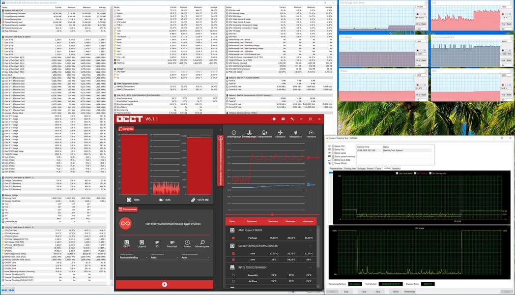 Запускаем все в режиме по умолчанию. Затем нагружаем тестами от AIDA, и OCCT.