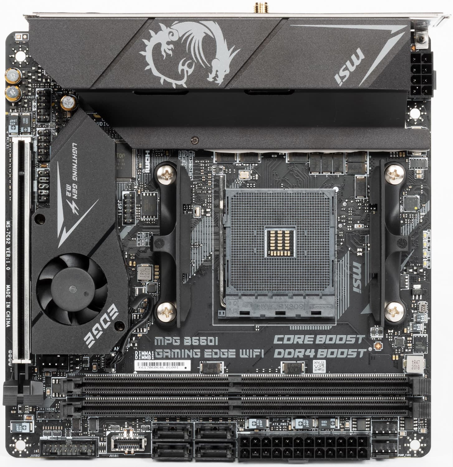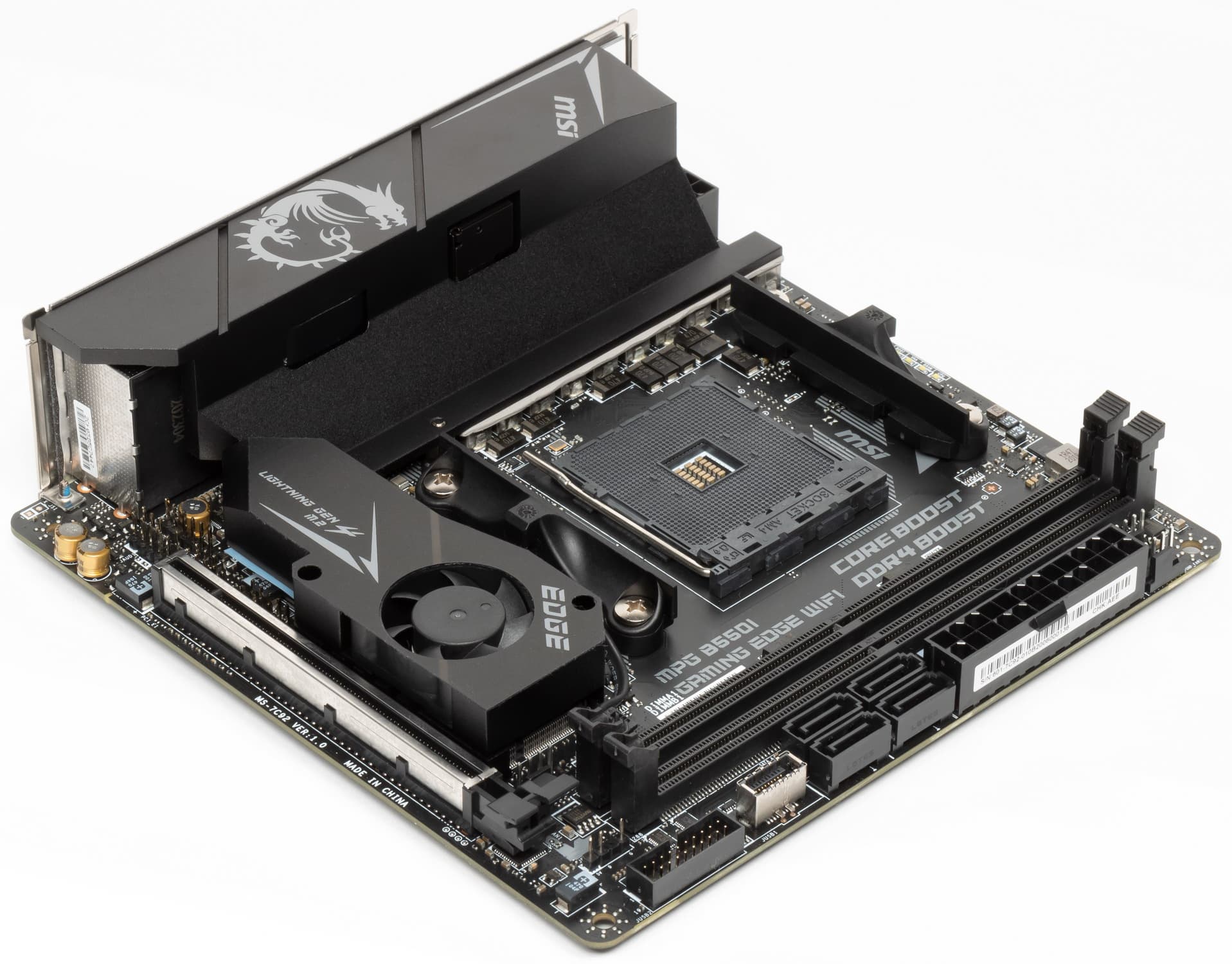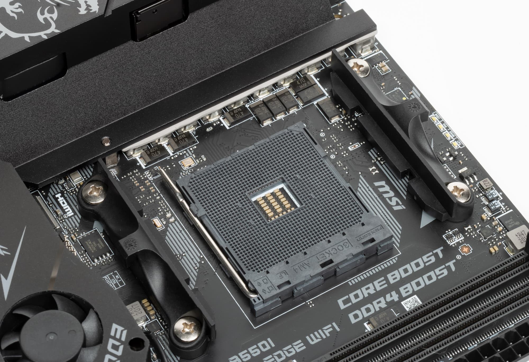 MSI MPG B550I Gaming Edge WiFi поддерживает процессоры AMD Ryzen 3-го поколения, выполненные под разъем (сокет) AM4 (PGA 1331). Но, как показала практика, процессоры предыдущих поколений также поддерживаются.