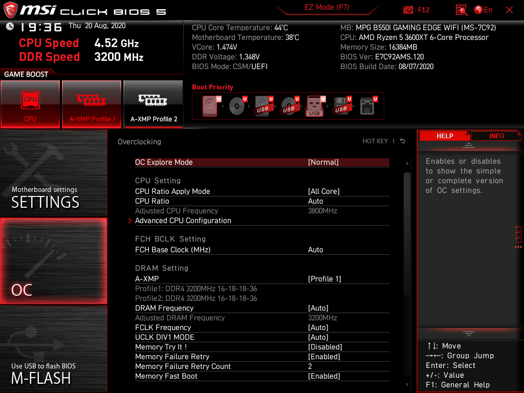 Процессор рассчитан на максимум в 4,5 ГГц. Его и выставляем вручную через Dragon Center.