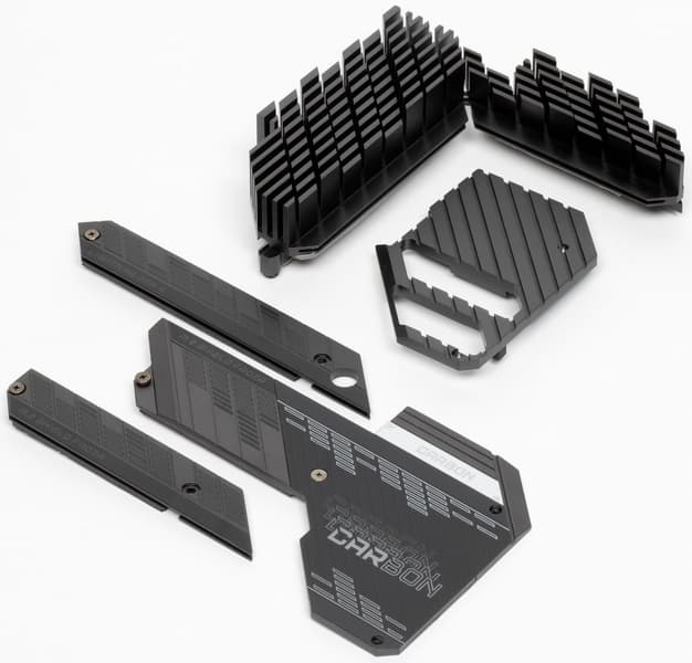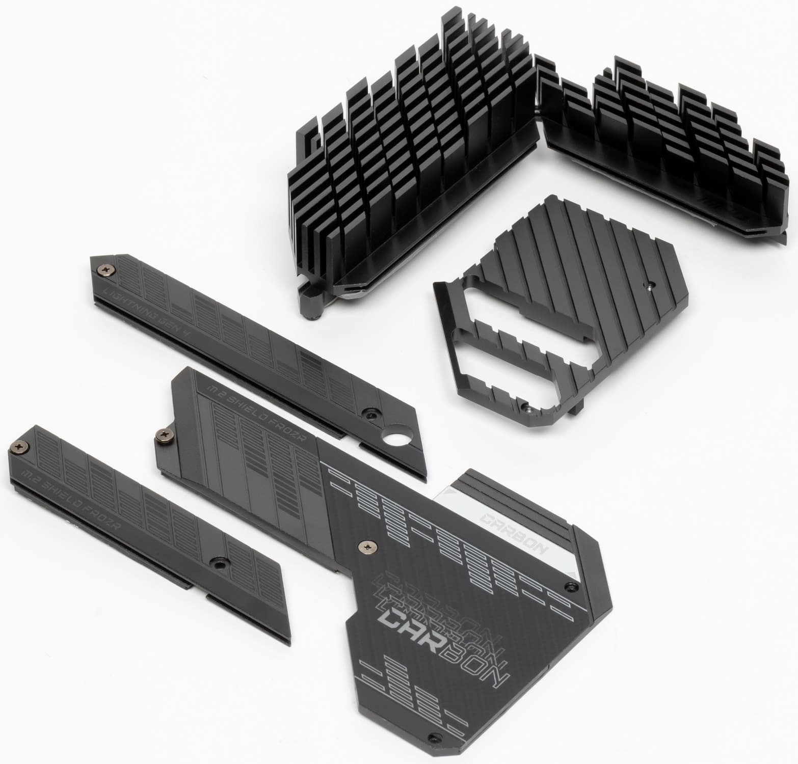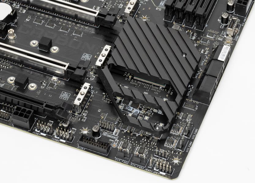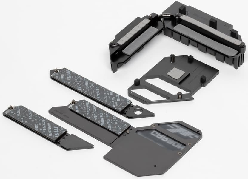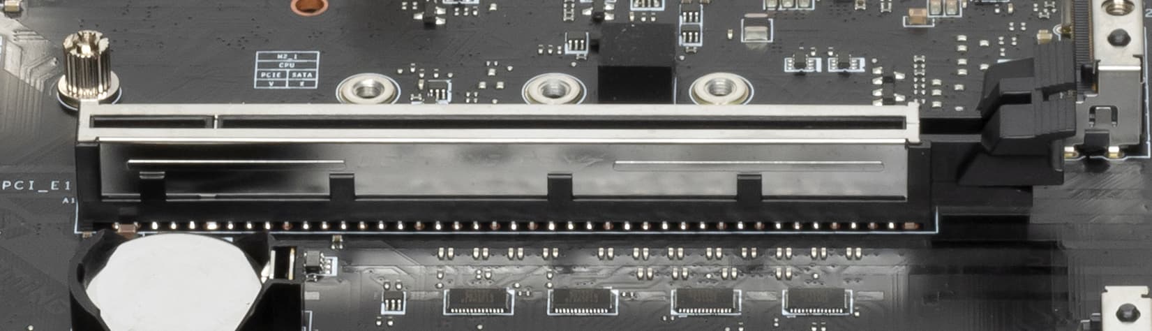 Все M.2 слоты имеют радиаторы. Верхний M2_1 и нижний М2_3 обладают отдельными радиаторами, когда как средний слот M.2 имеет радиатор, совмещенный с крышкой радиатора системного чипсета.