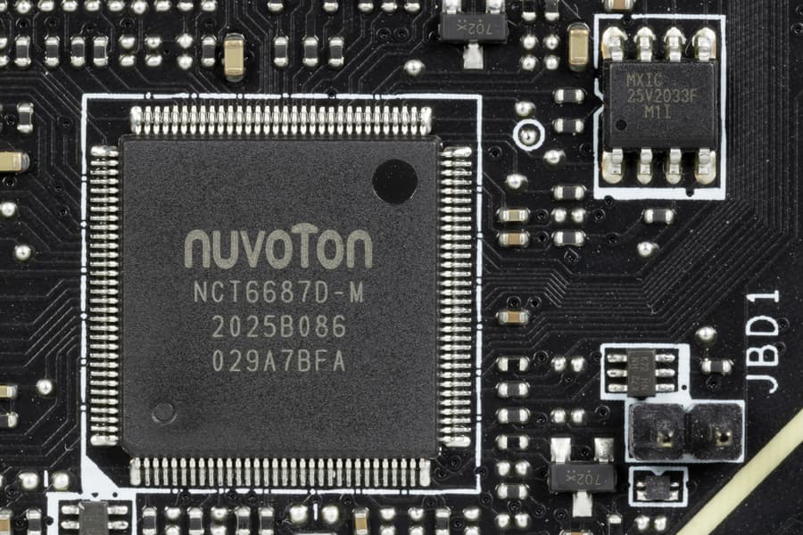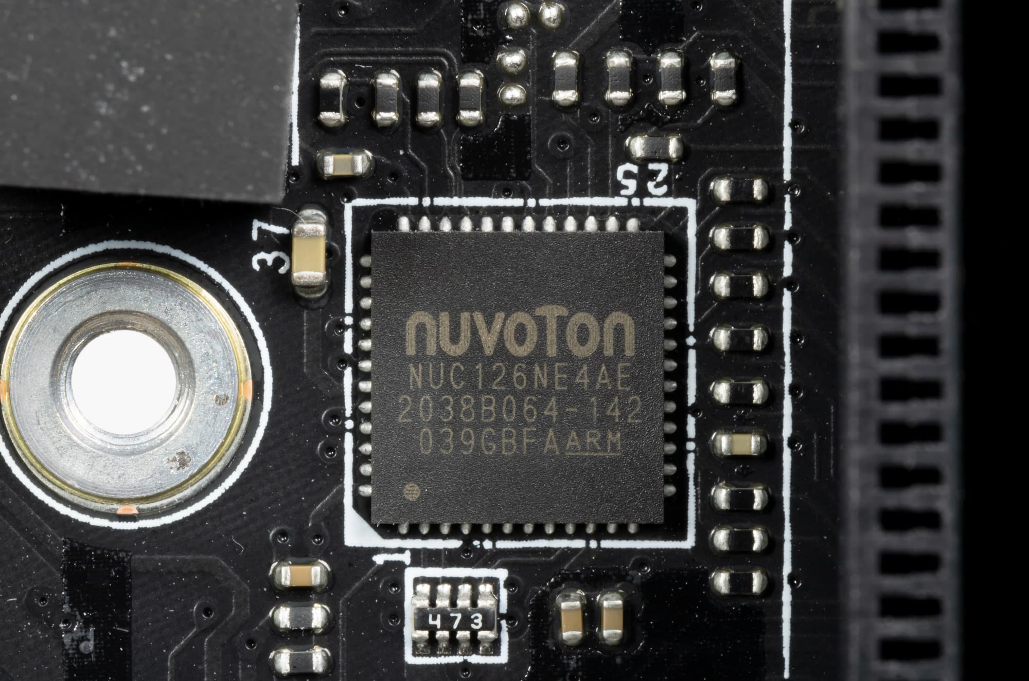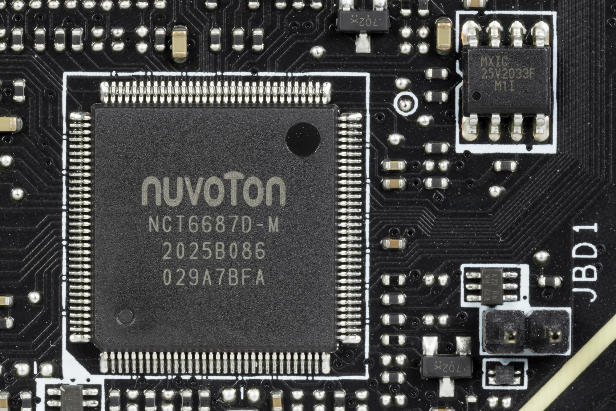За мониторинг состояния платы отвечает, а также контролирует работу всех гнезд СО (а также в целом Multi I/O) контроллер Nuvoton NCT6687D.