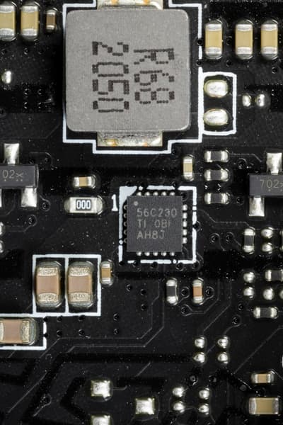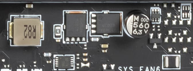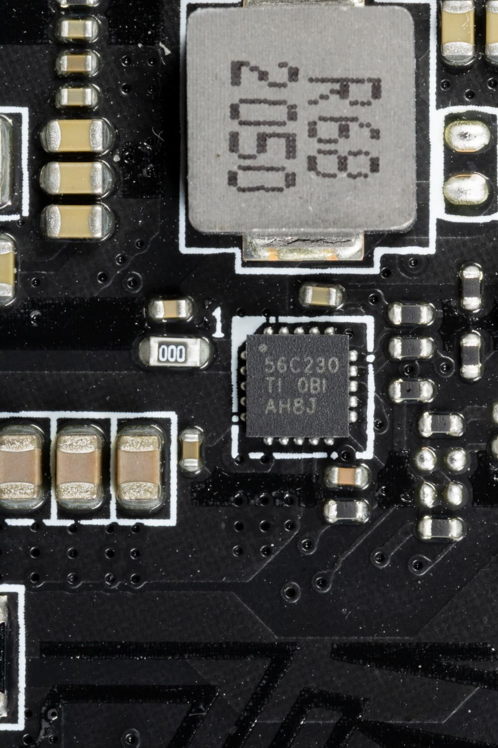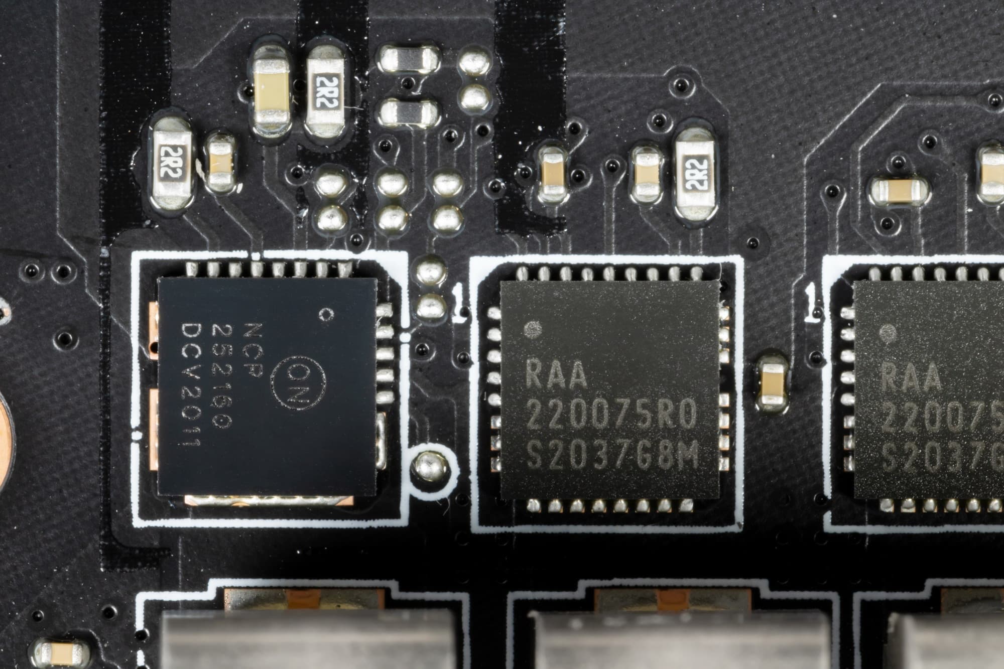 Каждый канал фазы имеет суперферритовый дроссель и RAA 220075 MOSFET от Renesas на 75 А для VCore и встроенного графического ядра и NCP252160 от On Semiconductor для VCCSA на 60А.