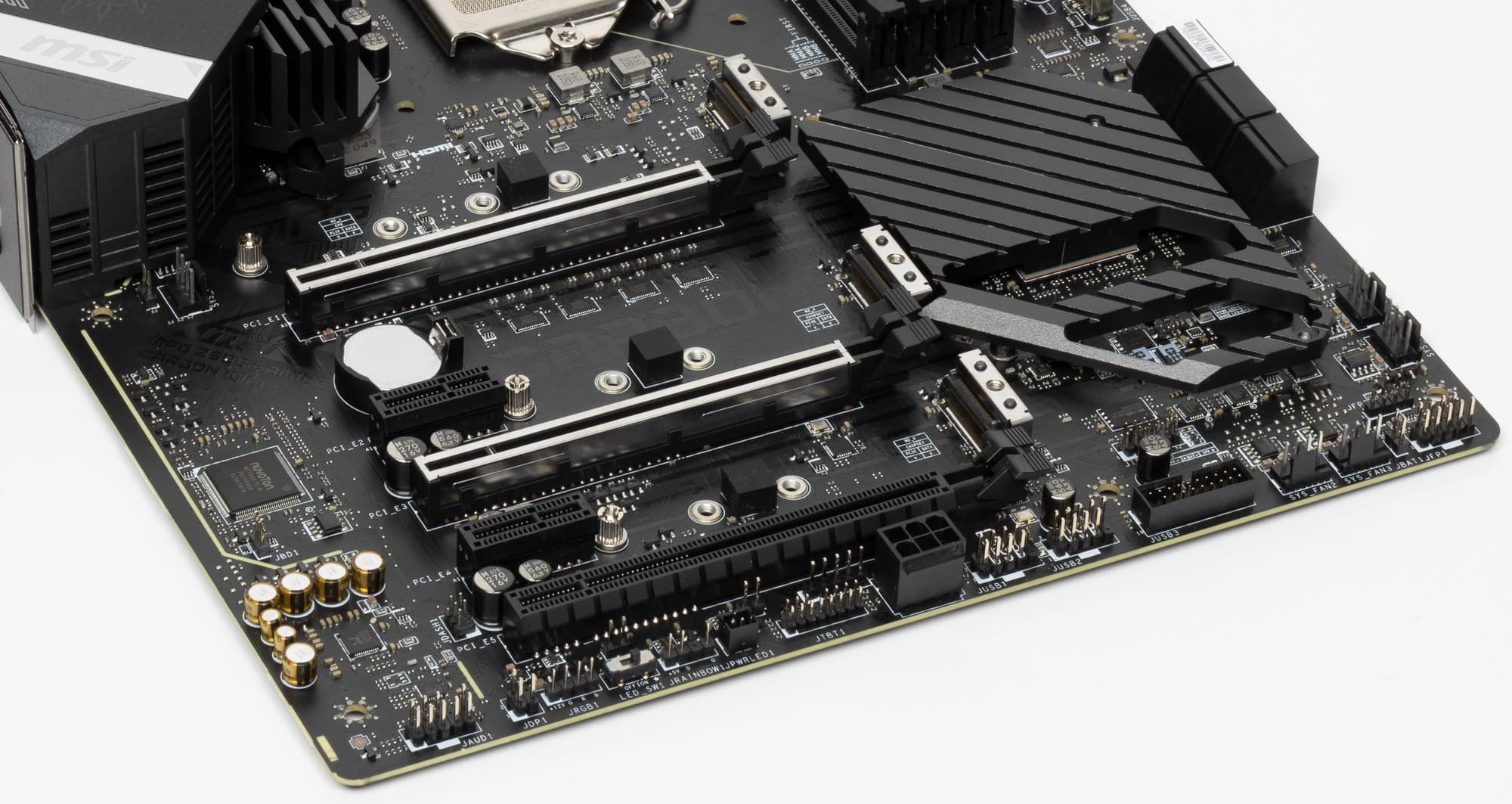 Как я уже упоминал ранее, M.2 слоты также имеют радиаторы: у верхнего и нижнего — свои персональные радиаторы, у среднего радиатор совмещен с крышкой радиатора Z590.