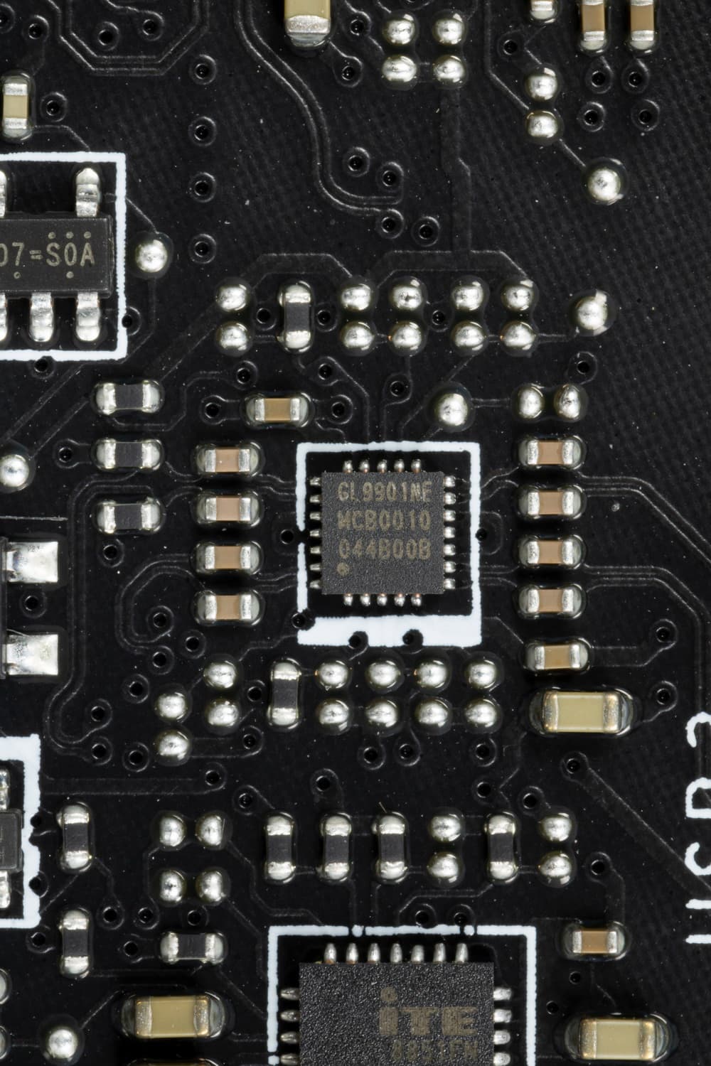 Материнская плата оснащена средствами связи очень хорошо. Имеется скоростной Ethernet-контроллер Intel I225-V, способный работать по стандарту 2,5 Гбит/с.