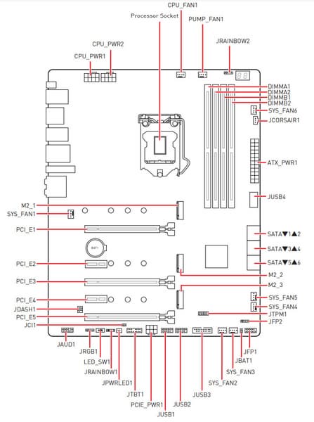 | Прочие внутренние элементы | 24-контактный разъем питания ATX 2 8-контактный разъем питания EPS12V 1 6-контактный разъем питания PCIe 1 слот M.2 (E-key), занят адаптером беспроводных сетей 1 разъем для подключения порта USB 3.2 Gen2 Type-C 1 разъем для подключения 2 портов USB 3.2 Gen1 2 разъема для подключения 4 портов USB 2.0 8 разъемов для подключения 4-контактных вентиляторов и помп ЖСО 1 разъем для подключения неадресуемой RGB-ленты 2 разъема для подключения адресуемой ARGB-ленты 1 разъем для подключения RGB Corsair 1 разъем аудио для передней панели корпуса 1 разъем для сброса CMOS 1 разъем Thunderbolt 1 разъем TPM для устройств безопасности 1 переключатель подсветки 2 разъема для подключения управления с передней панели корпуса |