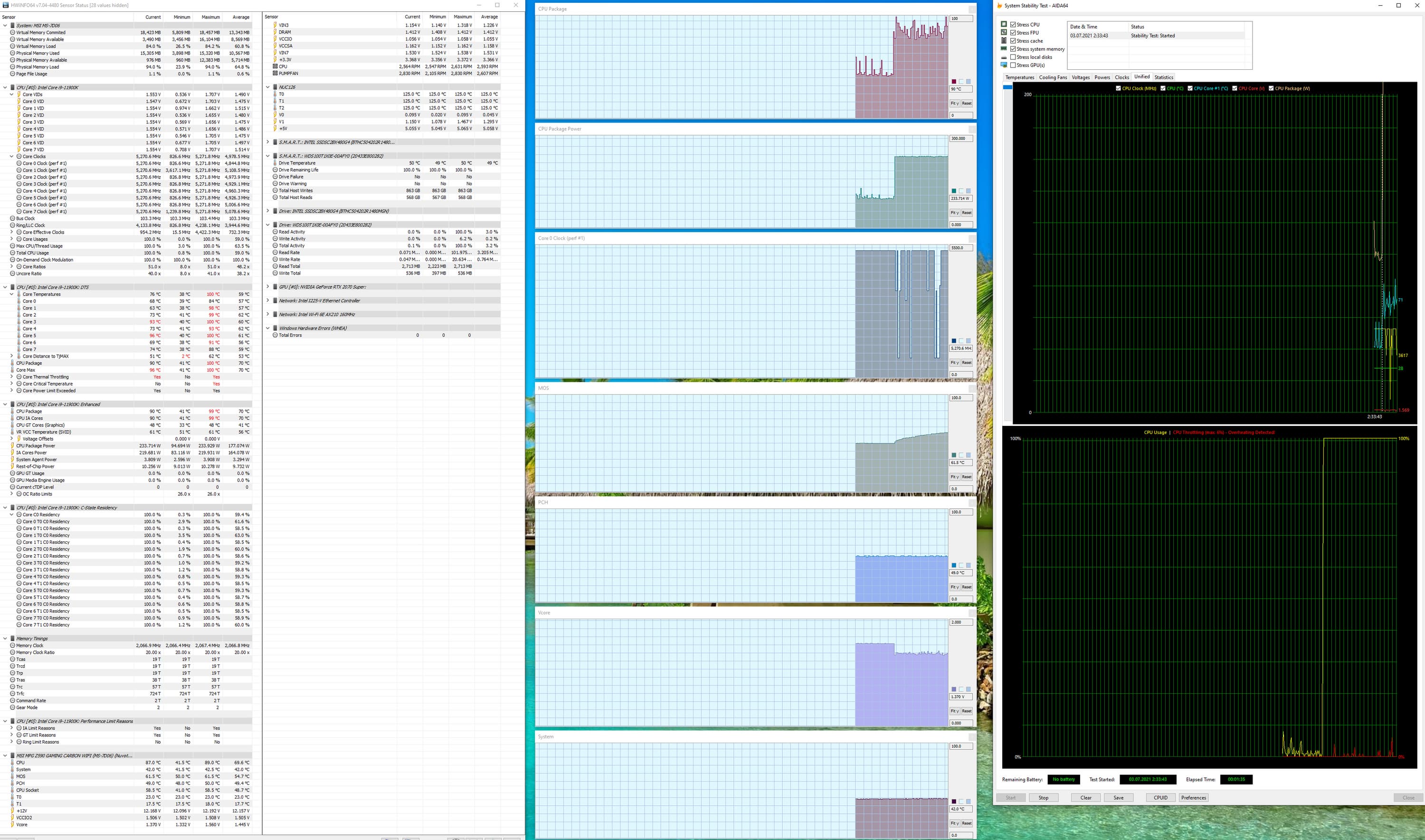 Изначально выставленные частоты порадовали, ибо получить 4,9 ГГц по всем ядрам — это очень хороший результат для такой «печки» как 11900К. Однако что мы видим? - Автооверклокинг снова выставил чрезмерно высокий вольтаж на ядре CPU, и через какое-то время чрезмерных нагрузок пошел троттлинг от перегрева.