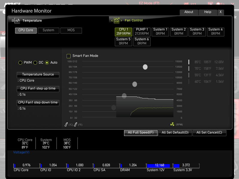 Через ПО или BIOS контролируется все гнезда для подключения воздушных вентиляторов или помп: они могут управляться как через ШИМ, так и банальным изменением напряжения/тока.