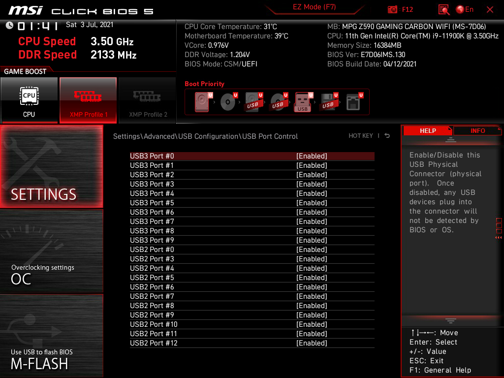 19 линий PCIe оказались занятыми. В чипсете Z590 связь с аудиокодеками идет через USB-порт. Также один USB 2.0 расходуется на поддержку BT (при наличии слота M.2 (key E) и два контроллера GL850G для своих нужд используют сигнальные линии USB 2.0 Детально об этом ниже в разделе USB-портов.