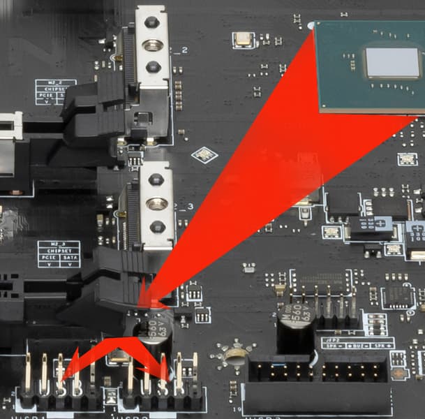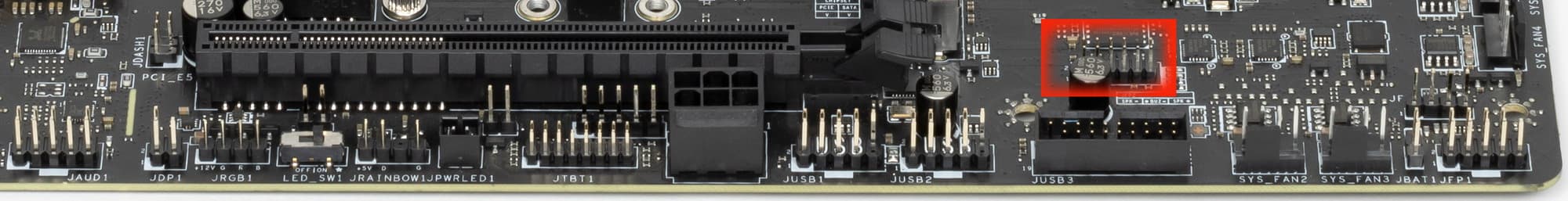 - Переключатель: или порты SATA_5/6 (2 линии), или слот M.2_3 (4 линии): максимум 4 линии;