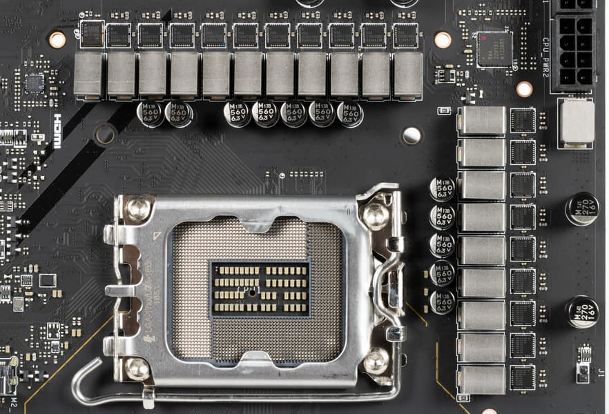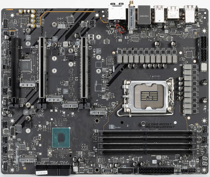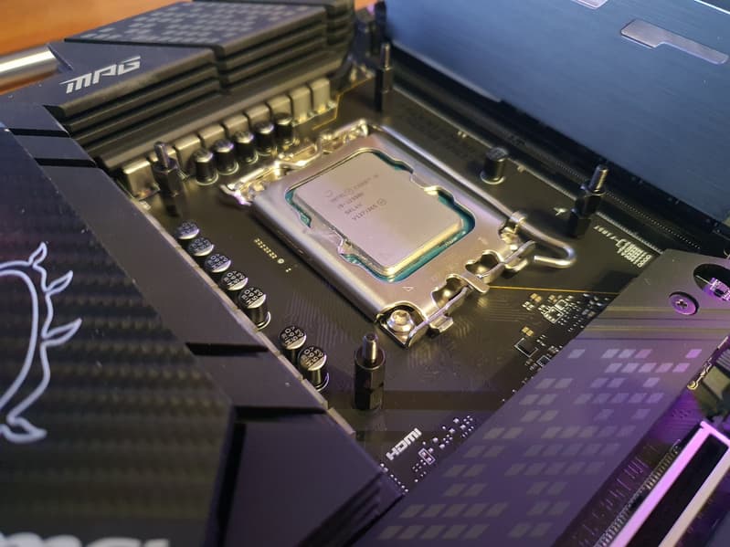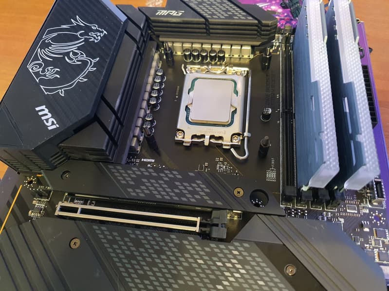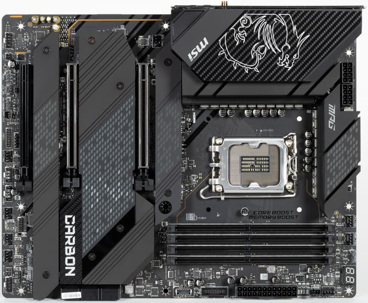 Еще раз надо напомнить, что MSI MPG Z690 Carbon WiFi поддерживает процессоры Intel Core 12-го поколения, выполненные под разъем (сокет) LGA1700. Система крепления систем охлаждения для CPU несовместима с той, что для LGA1151/1200. Но при этом следует иметь в виду, что ряд старых СО все же сможет быть применим, лишь придется где-то приобретать или заказывать у производителя комплект крепежа под LGA 1700. Дело в в том, что новые процессоры 12ххх на 0.8 мм тоньше предшественников, и кулеры с жесткой установкой в матплате на фиксированную высоту просто не достанут до 12ххх. Подойдут лишь СО с пружинистой посадкой подошвы на процессор.